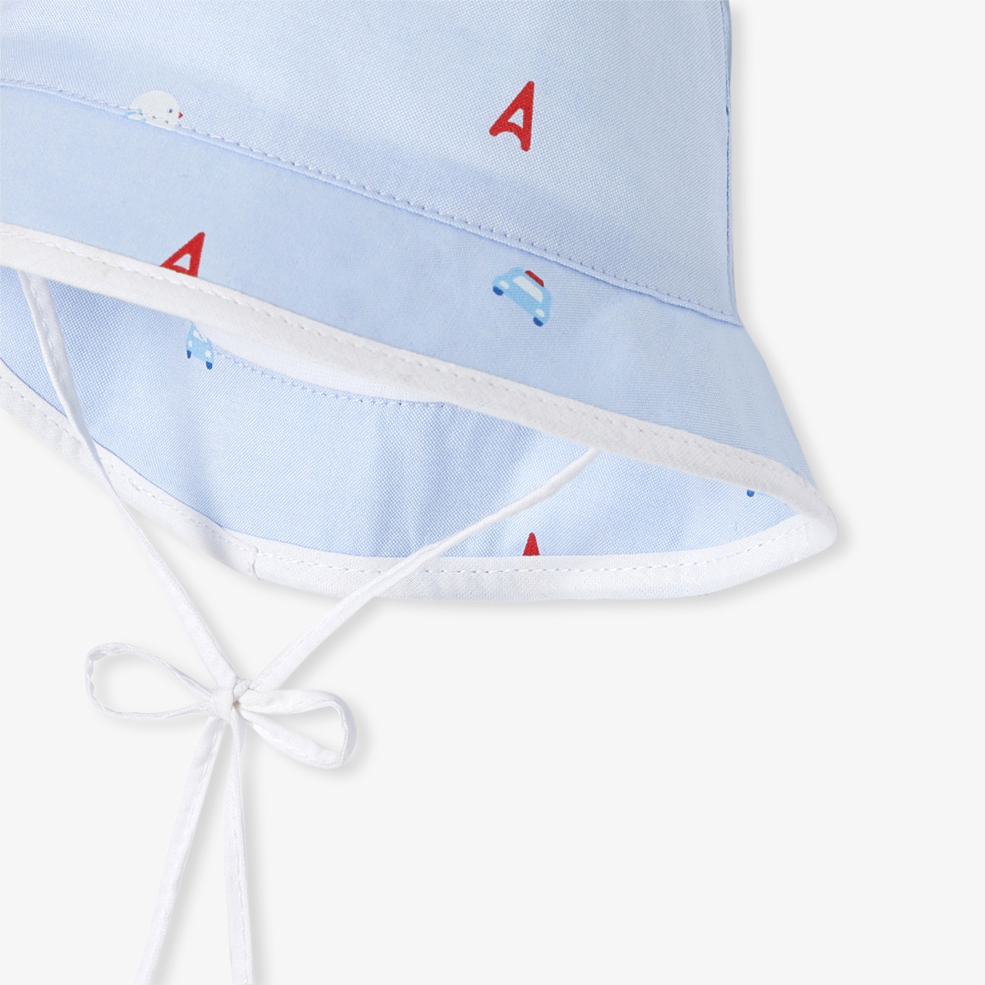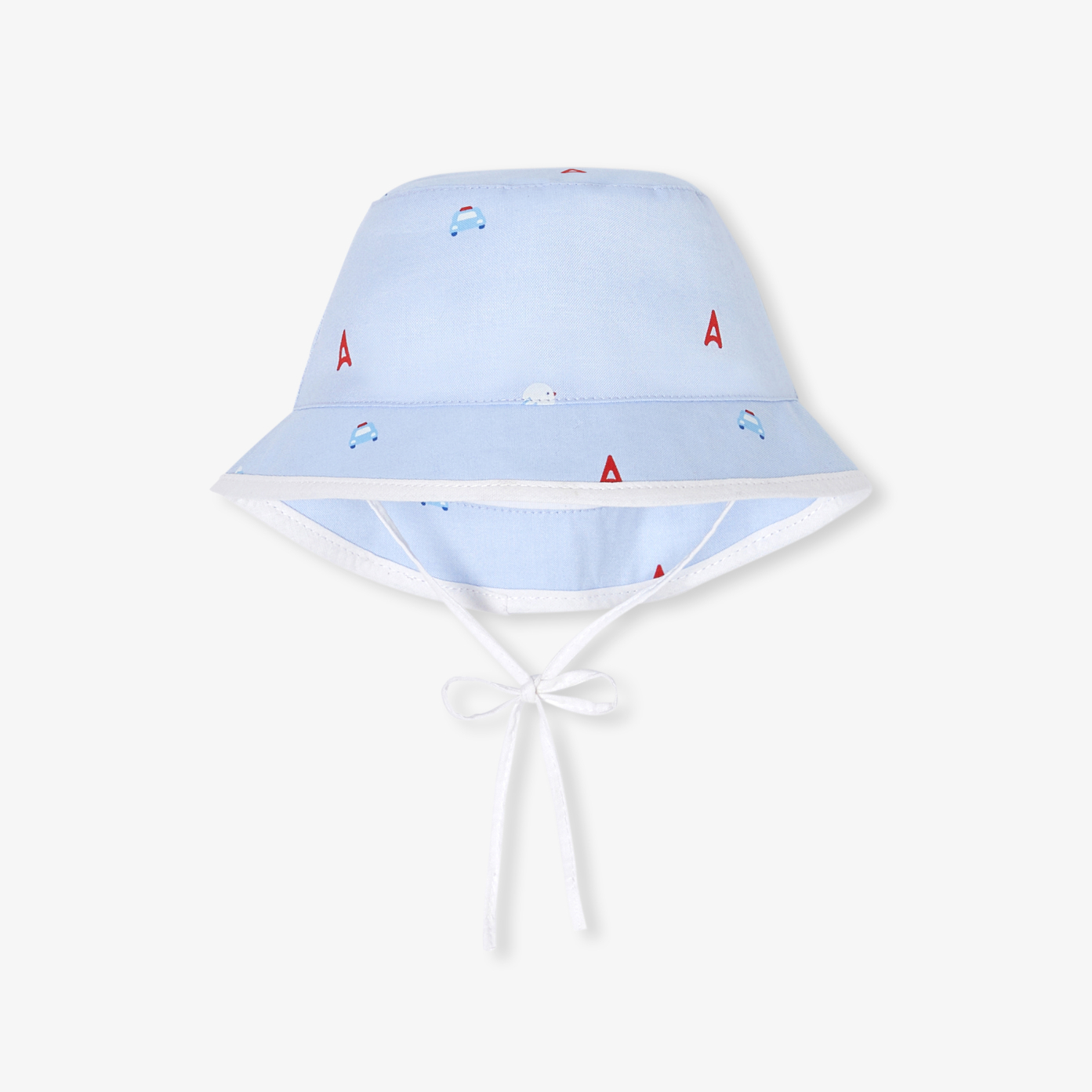 In Oxford cotton printed with Eiffel towers and little cars, this baby boy bob adopts a very Parisian urban look. Equipped with comfortable tie fastenings, this must-have garment will protect your baby in style.-Baby boy bob in Oxford cotton -Parisian motifs-Contrasting tie fastenings-Baby gift idea