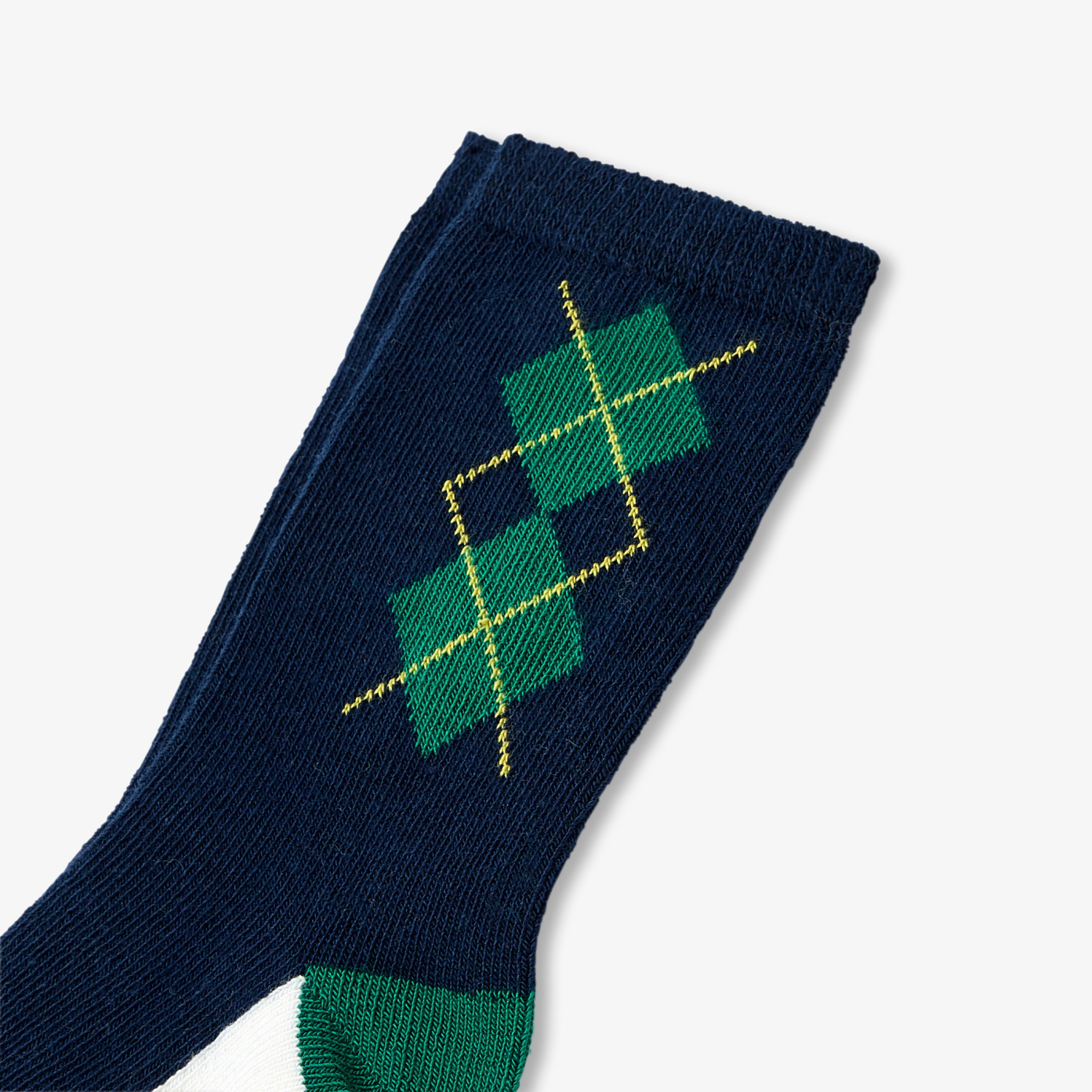 Inspired by the English college look, high socks are making a welcome return to baby's wardrobe. Soft and easy to slip on, jacquard diamonds and duck intarsia energise these preppy, playful socks designed to finalise everyday looks.- Soft, stretchy organic cotton- Duck intarsia- Jacquard diamonds- Easy to slip on