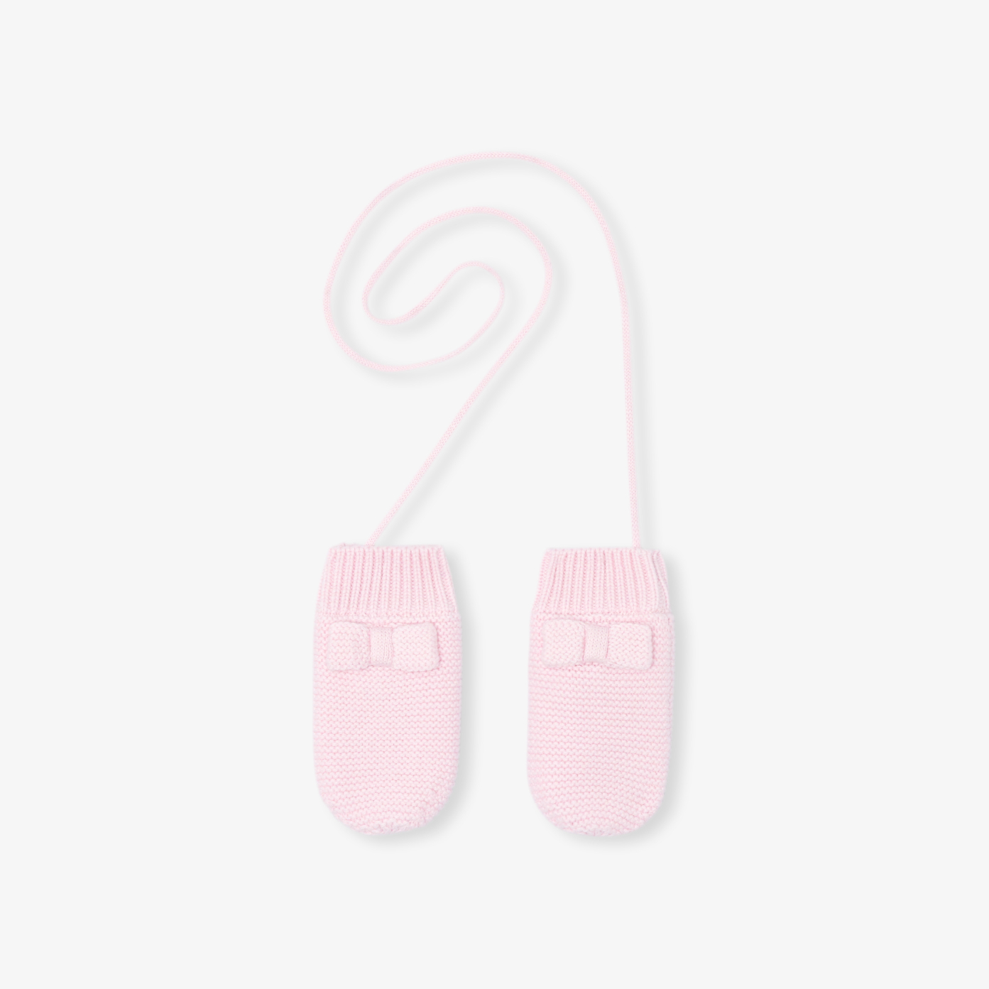 Available in soft cotton and cashmere, baby girl mittens reveal all their chic. Accessorised with a flat bow and tied with a cord, slip them into the sleeves of her coat from autumn.- Baby mittens in cotton and cashmere- Garter stitch knit- Decorative bow- Cord- Coordinating beanie and snood.
