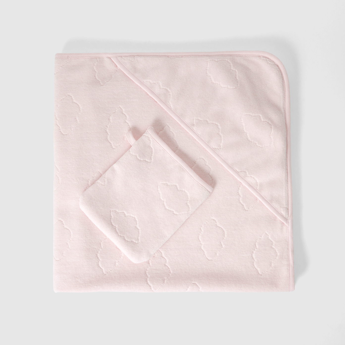 After splashing around in the tub and sharing a sweet moment together, wrap baby up in this lovely hooded bath towel. Made from organic cotton with a velvet texture, it is decorated with little clouds. The hooded bath towel comes with a matching mitt and makes a sweet gift set for a newborn. - Organic cotton - Terry velour - Dimensions: 80 x 80 cm - Matching mitt