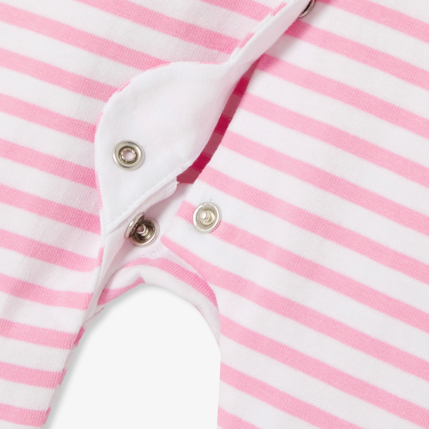 With its pretty scallops and long sleeves, this baby girl jumpsuit seduces with its minimalism and tender message. Round-necked and easy to put on thanks to its snap front and crotch opening, its soft, supple jersey will bring comfort and suppleness to the little one from the very first days.-Organic cotton baby girl jumpsuit-Soft striped jersey-Round neck-Embroidery on chest-Snap front and crotch opening-Great idea for a baby gift, either for yourself or as a present.