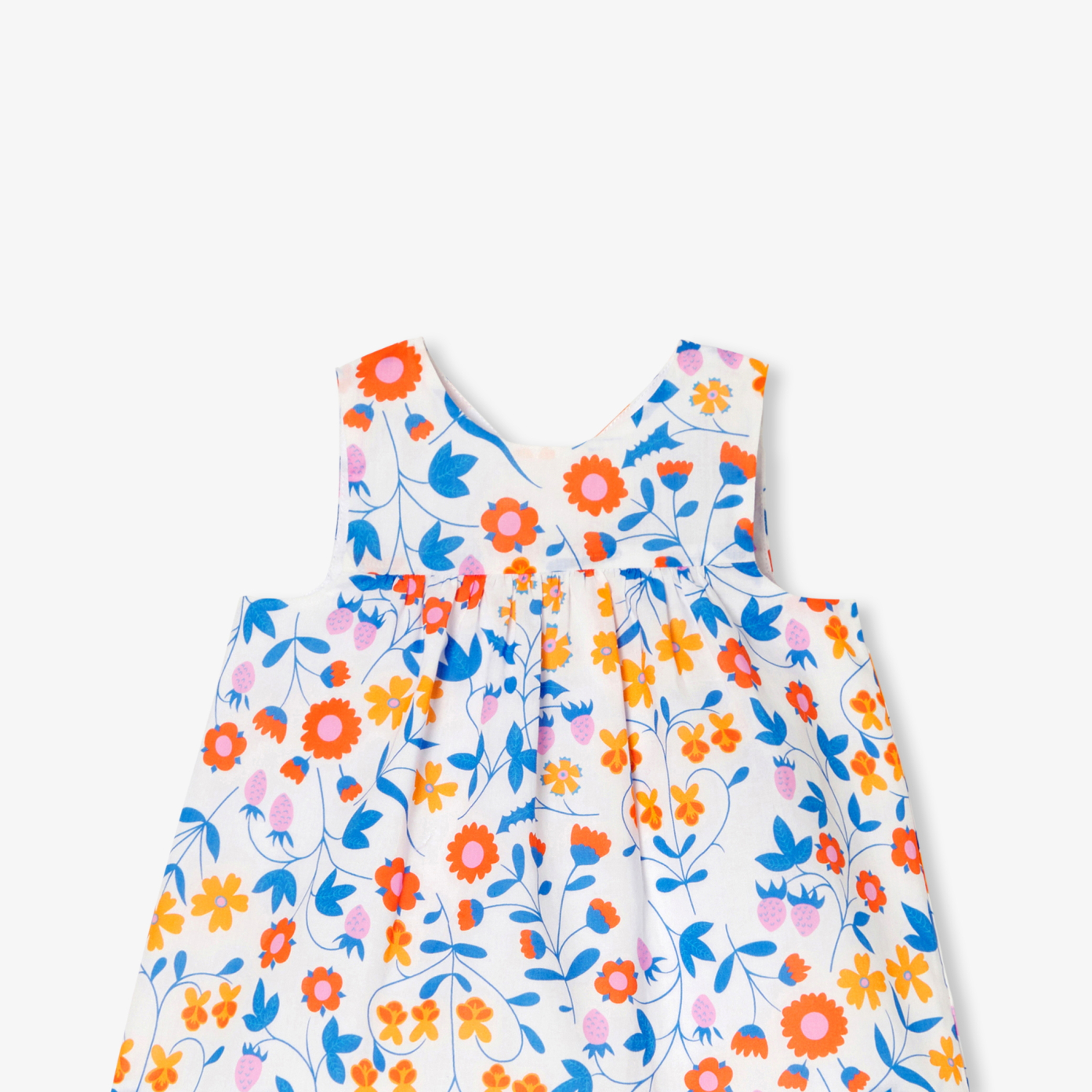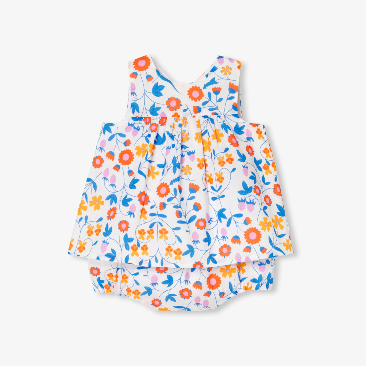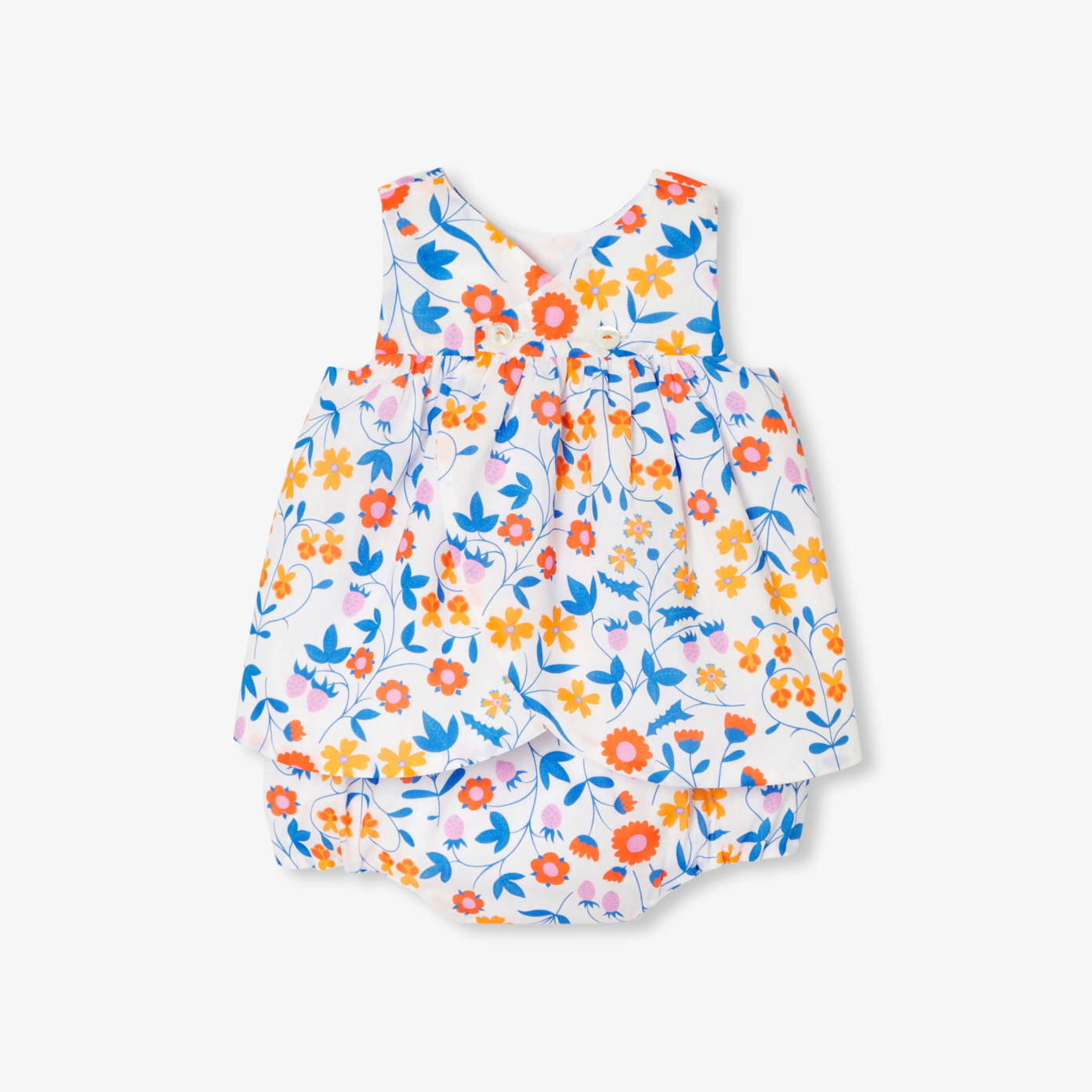 This summer, this baby girl set in Liberty fabric gains in freshness and elegance. Composed of a top with a cross-over opening at the back, a gathered cut and a rounded base at the back add volume. Fully lined in cotton voile, elasticised bloomers complete this chic, floral duo for city wear or vacations by the sea.-Cotton baby girl set-Top with gathered cut-out-Open cross-over back with natural mother-of-pearl buttons-Bloomer with elasticated waist and thighs-Lined in cotton voile-Mirabelle Liberty fabric, exclusive Jacadi colouring