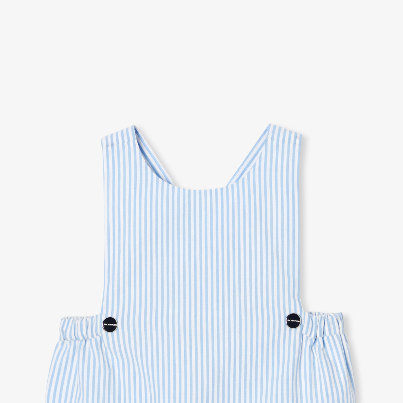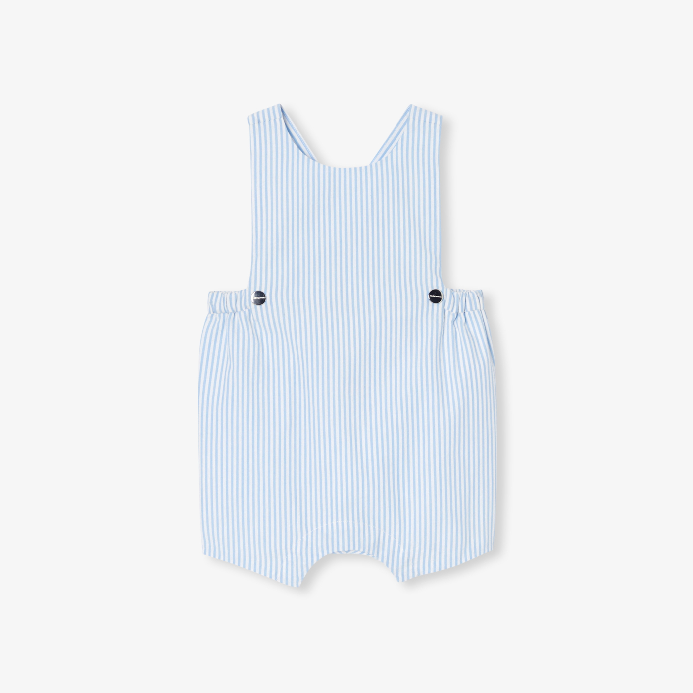 These timeless seersucker dungarees are a must-have for any little one's summer wardrobe. As chic as it is cosy, thanks to its embossed look and cotton lining, you won't be able to resist its luminous color and crossed-back straps. Worn on its own or over a bodysuit in the height of summer, it will be the perfect companion for baby's first vacations.-Short baby boy overalls in organic cotton-Seersucker with embossed effect-Cotton lining-Decorative front press studs-Straps crossed at back-Invisible back and crotch press studs