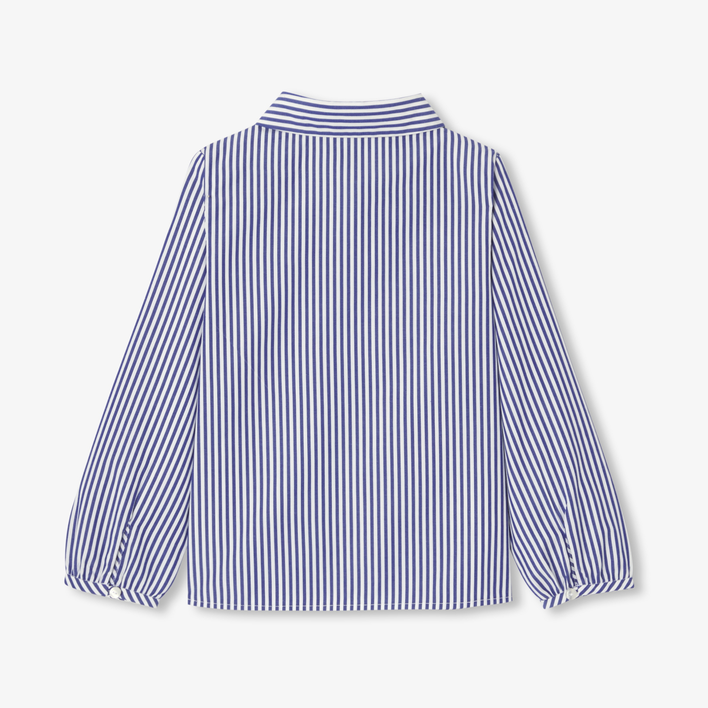 Chic and geometric, the back-to-school wardrobe delivers on all its promises with this girl shirt. Made from striped poplin, it is embellished with gathered ruffles on the button placket. An elegant model to wear with wide-leg jeans or a culotte skirt for a preppy silhouette.- Girl shirt in organic cotton- Ruffled button placket- Natural mother-of-pearl button opening