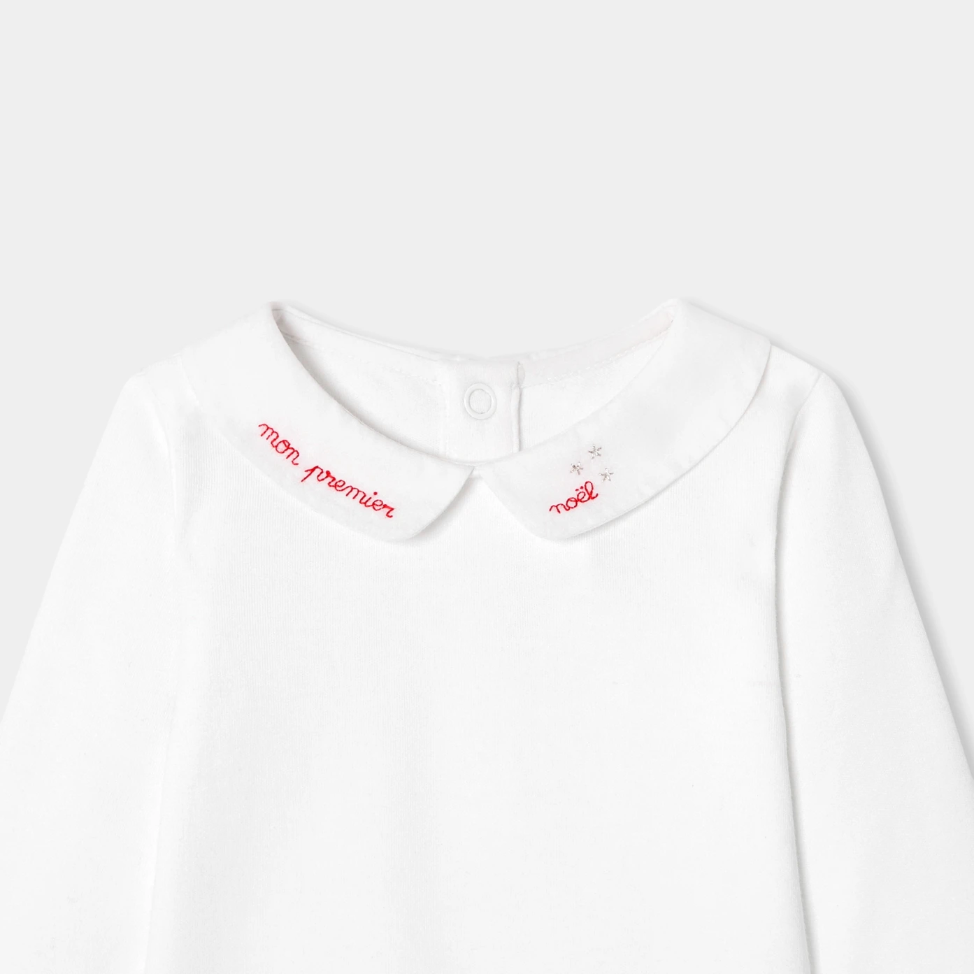 Made from soft, supple interlock cotton, this baby long-sleeved bodysuit features a poplin collar hand-embroidered with the message My first Christmas. Wear under dungarees on Christmas Eve, and baby will look as chic as his elders.- Baby bodysuit in cotton interlock- Embroidered poplin collar- Hand-embroidered message- Buttoned opening at back and crotch.-Unisex item suitable for both girls and boys