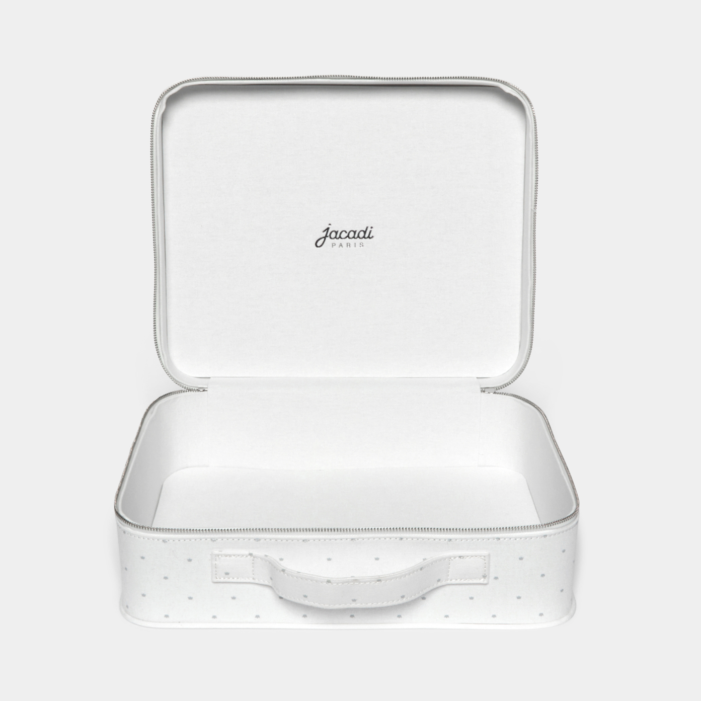 A brand new accessory for your newborn baby's trousseau, this elegant baby case is made from cotton and printed with the emblematic Jacadi crown. Whether given as a gift or as a birth present, it will become a decorative object in your child's bedroom and a fun accessory in which cuddly toys and other small items will fit perfectly.- Cotton suitcase- Crown print- Zipped opening- Top handle- Dimensions: 34x28 x12cm