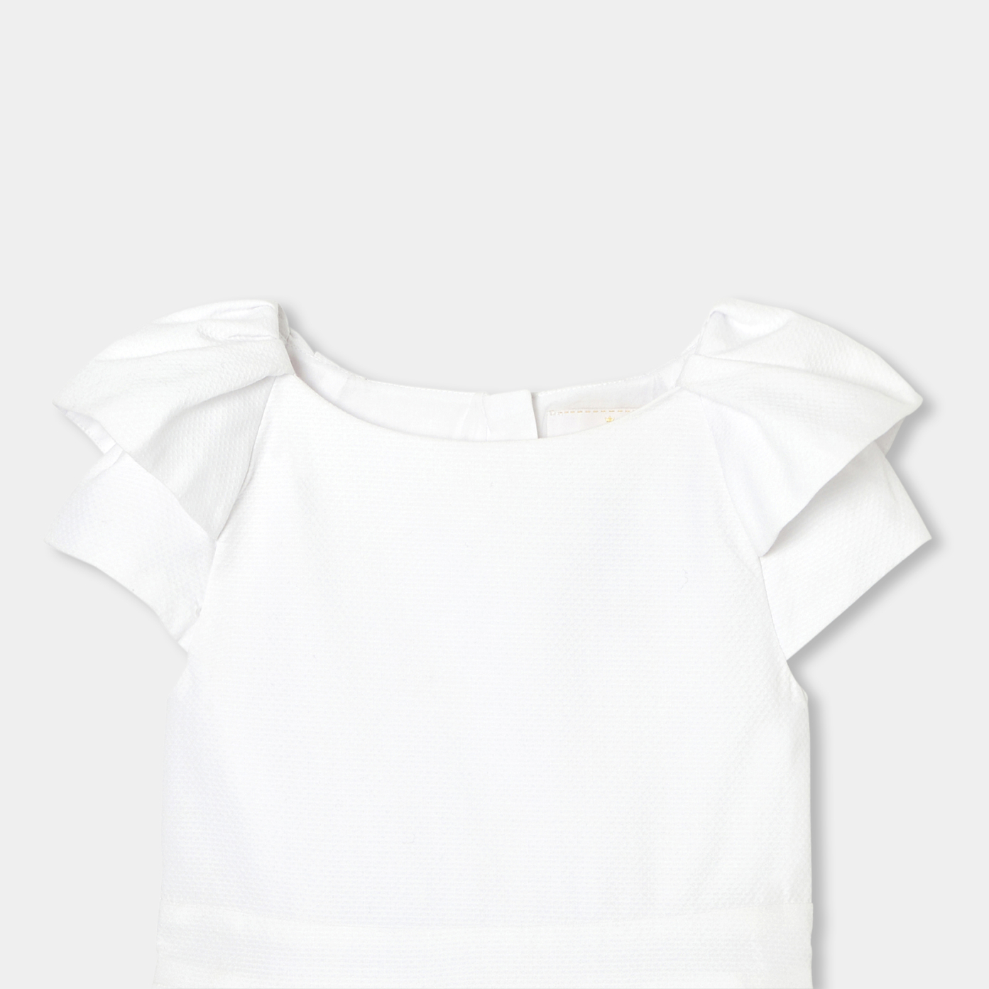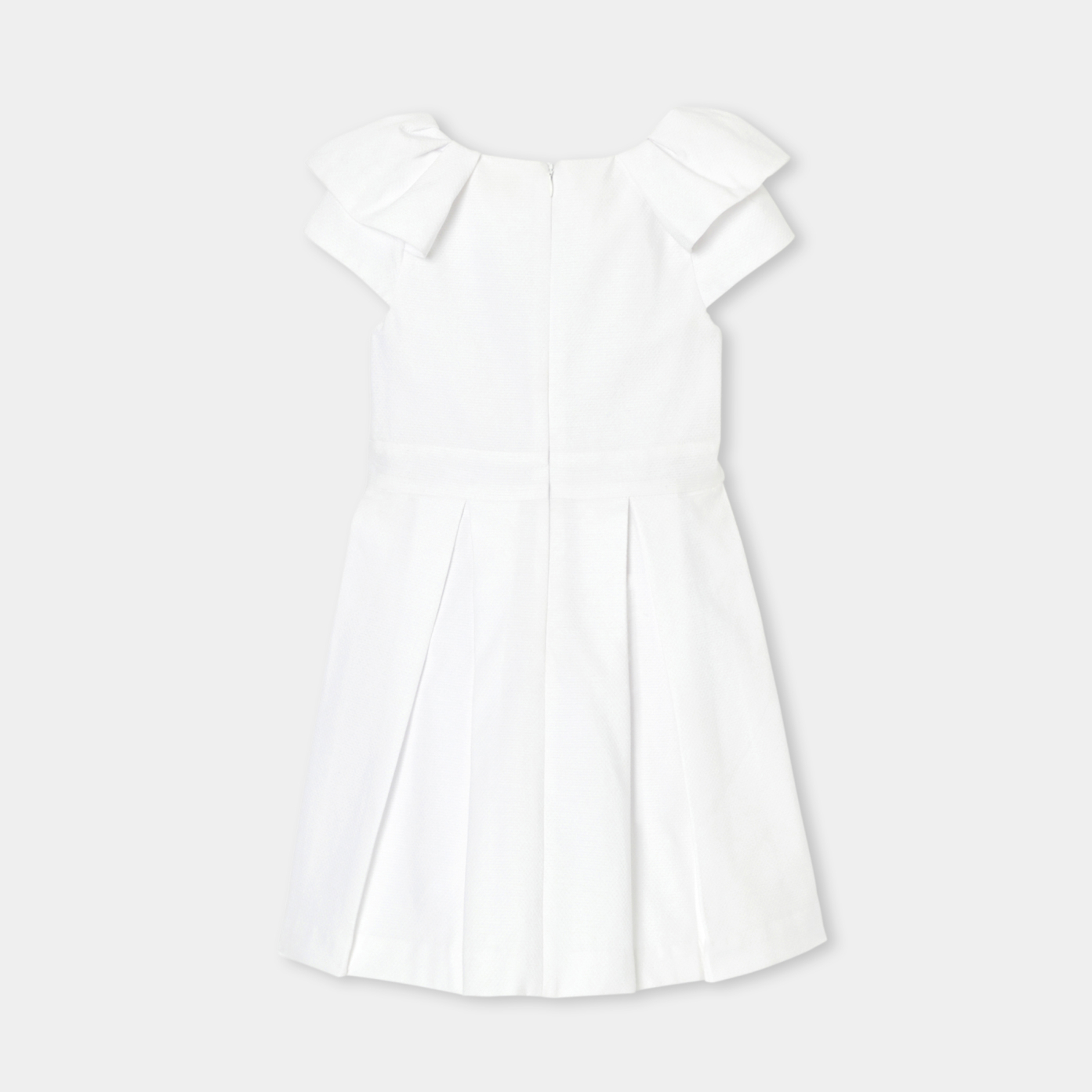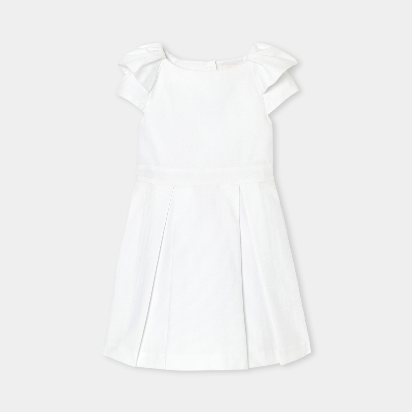 Geometric lines and chic allure for this girl formal dress. Made in honeycomb piqué, its detailed sleeves, marked waist and box pleat base reveal all Jacadi's savoir-faire. Paired with a colourful headband and gold sandals, it's the perfect outfit for the big day.- Girl ceremony dress in honeycomb piqué- Organic cotton- Detailed sleeves- Marked waist- Box pleat base- Cotton lining- Invisible zip opening at back