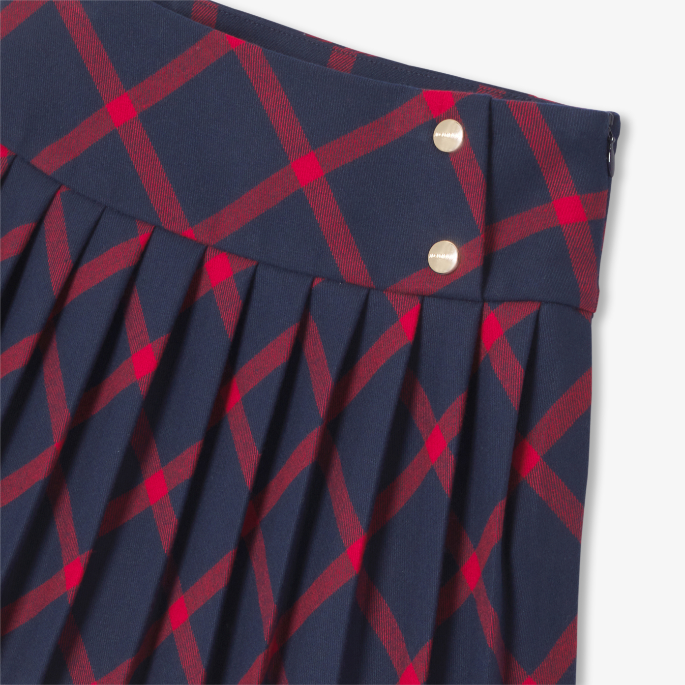 Inspired by the iconic tartan kilt, a maxi plaid modernises this girl skirt in permanent pleating. Featuring a flat belt with gold buttons for a structured silhouette, it opens on the side with a zip. Worn with a t-shirt and cardigan, for chic and preppy back-to-school looks .- Permanent pleated skirt- Maxi plaid pattern- Flat waistband- Decorative button placket- Side zipper opening- Waist adjustable from inside with elastic band.