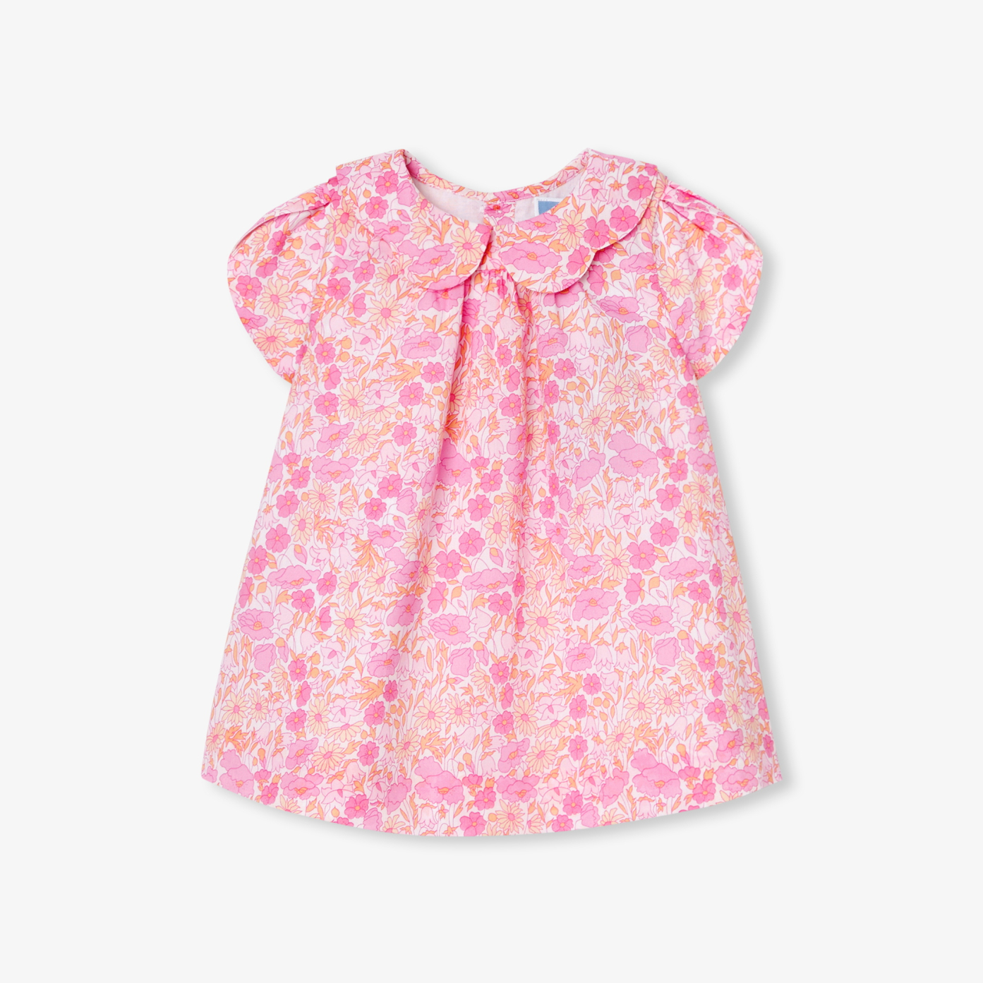 Summer continues in the back-to-school wardrobe with this baby girl dress in Liberty fabric. Worked with scalloped balloon sleeves and a scalloped collar, a play of gathers and cheerful colours sublimate this chic, practical piece. Lined in cotton voile and buttoned at the back for easy dressing, pair it with the matching cardigan this fall for a contemporary silhouette.- Baby dress in cotton poplin- Short scalloped balloon sleeves- Scalloped collar- Gathers bring lovely volume- Cotton voile lining.br>- Back opening with natural mother-of-pearl buttons- Liberty Poppy and Daisy fabric- Exclusive Jacadi colouring- Lovely birth gift idea to offer or to treat yourself.