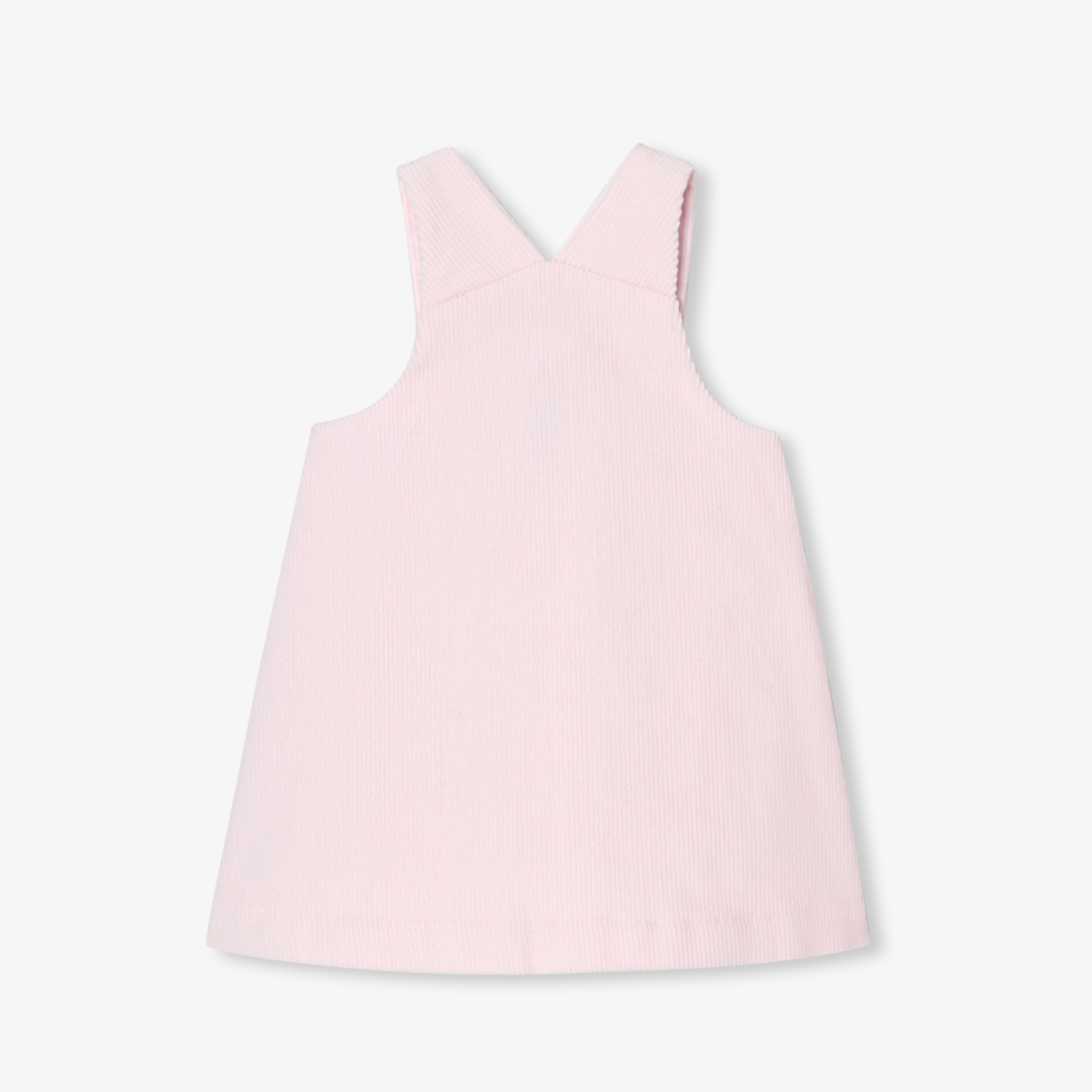This baby girl pinafore dress promises a cosy retro season. Made from corduroy and featuring patch pockets, its soft colour will pair easily with a t-shirt or blouse for daycare or family vacations.- Organic cotton baby girl dress- Corduroy- Snap straps and sides- Patch pockets- Cotton voile lining