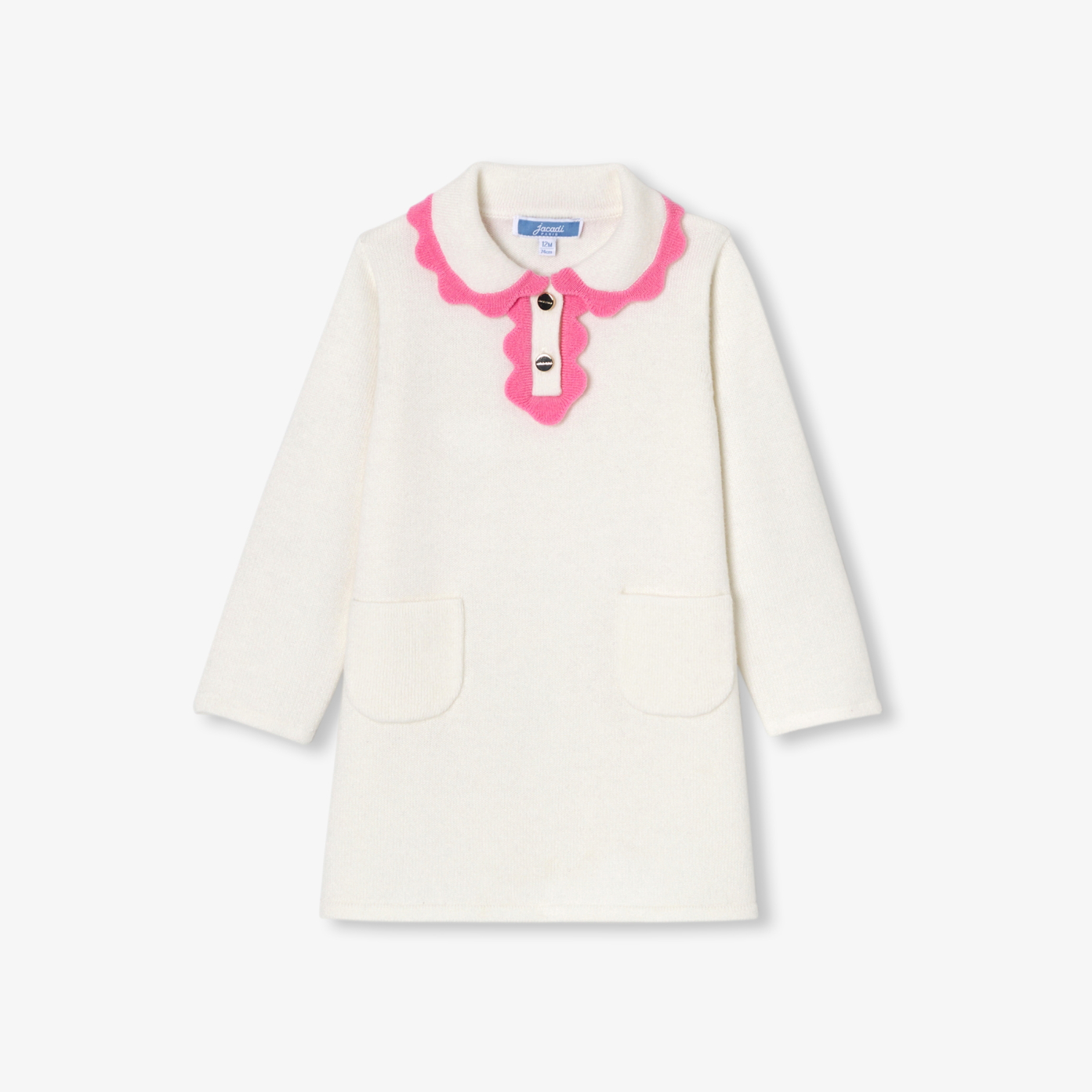 For a ready-to-wear silhouette that is as chic as it is comfortable, our designers have created a ravishing baby girl dress in sustainable wool and cashmere. Adorned with a Peter Pan collar and a button placket highlighted with contrasting scallops, patch pockets and contrasting cuffs lend their originality to this model, perfect for everyday wear and the festive season.- Knit baby dress- Sustainable wool and cashmere- Peter Pan collar and button placket highlighted with scallops- Patch pockets- Contrast bottom sleeve finishes- Buttoned back opening