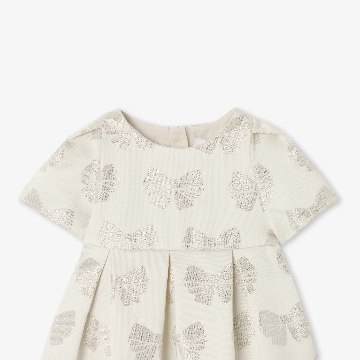 This elegant baby girl dress radiates French style. Specially created for the festive season, an oversized jacquard bow and balloon sleeves sublimate this delightful piece to coordinate with tights and a pair of Mary Janes for a chic, modern Christmas silhouette.- Baby festive dress- Jacquard bow- Balloon sleeves- Waist cut-out and box pleats for lovely volume- Invisible zip opening at back