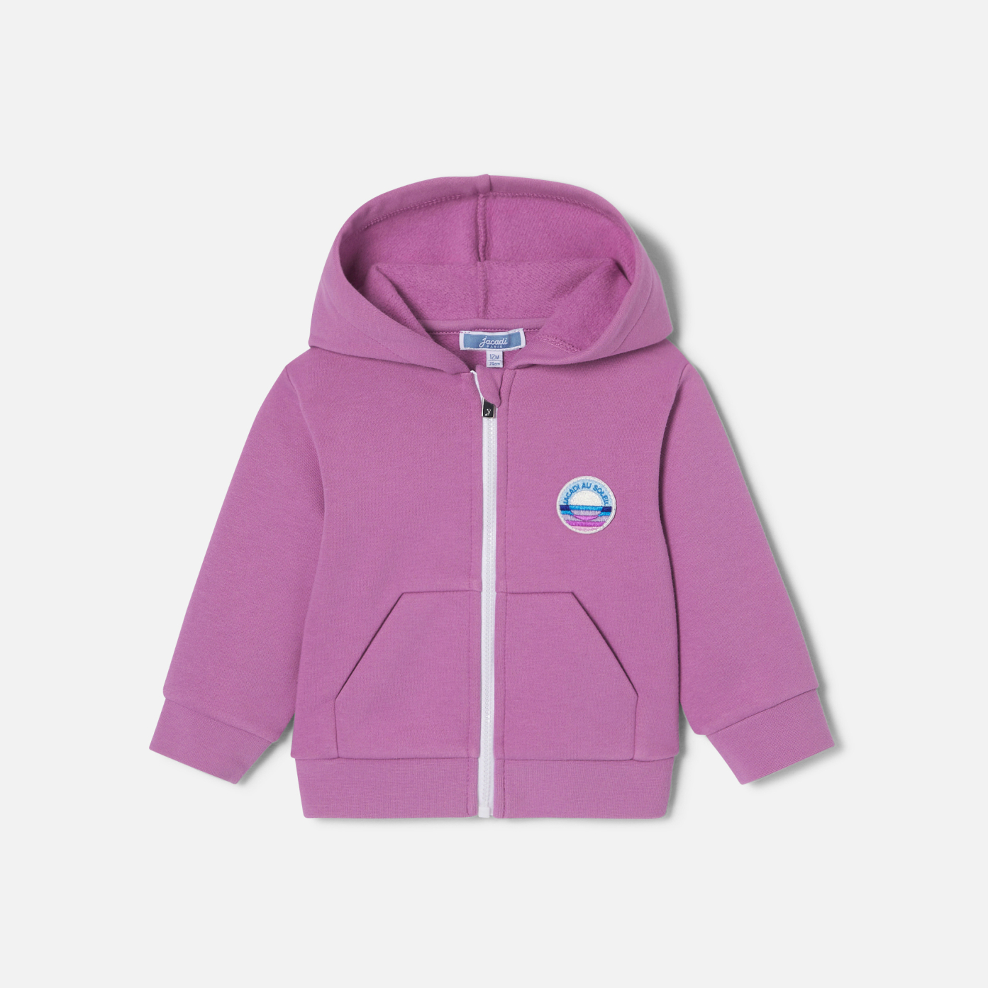 This baby sweatshirt expresses all its personality for summer. Dyed in a modern colourway, the hood, patch pockets and badge on the chest structure this model to be worn all summer long.-Baby sweater in organic cotton- Soft touch fleece- Patch pockets- Zip closure- Badge on chest