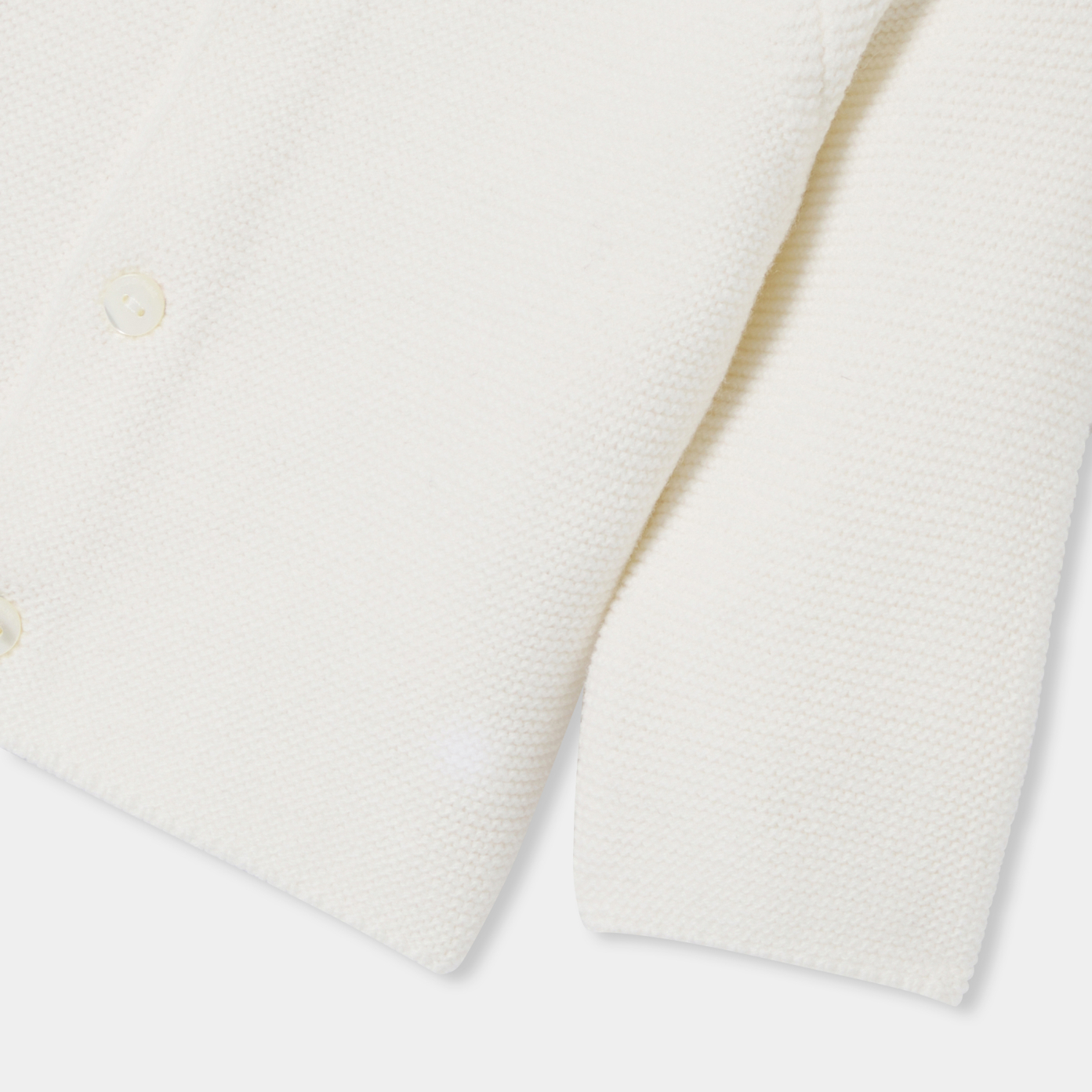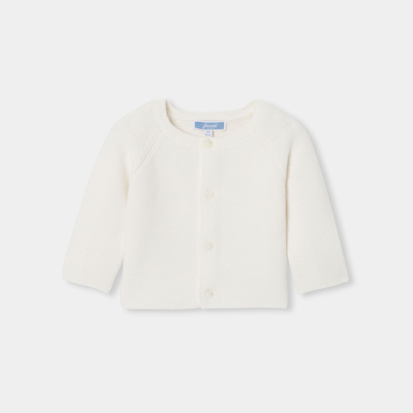 This baby cardigan, worn like a wrapped jumper, will be with your newborn from the very first days. Easy to slip on and featuring natural mother-of-pearl buttons, this wardrobe essential, which can be coordinated with pyjamas or a bodysuit, will wrap baby in comforting warmth thanks to its combination of sustainable wool and cotton.- Sustainable wool and cotton baby cardigan- Buttoned opening- Natural mother-of-pearl buttons- Hospital bag essential