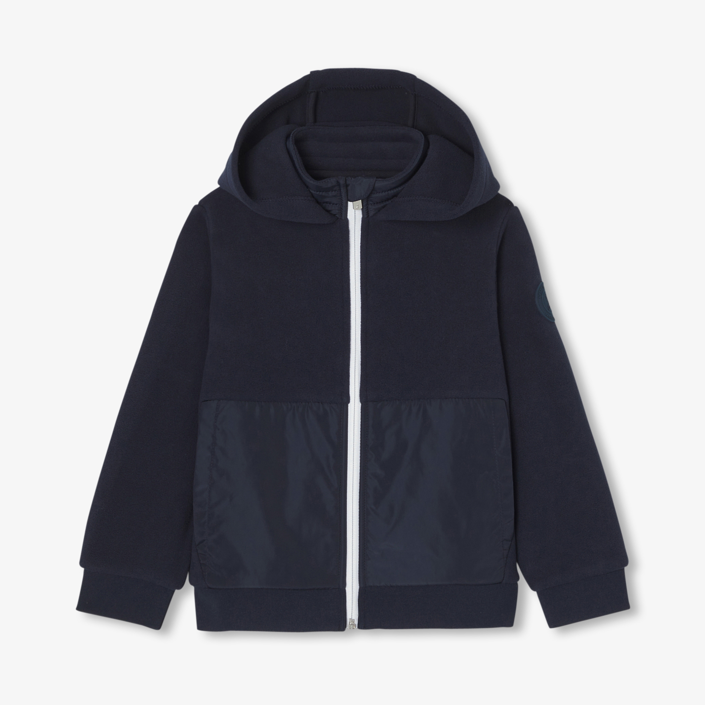 A staple of the beginning of fall wardrobe, the boys zip-up sweatshirt gains in modernity with soft and warm microfleece. More urban with its nylon pockets and badge on sleeve, this sporty-chic model to wear over a t-shirt with jeans will quickly become his favorite.- Zip-up sweatshirt in microfleece- Integrated hood- Nylon pockets- Soft, supple and warm model- Zip opening- Badge on sleeve