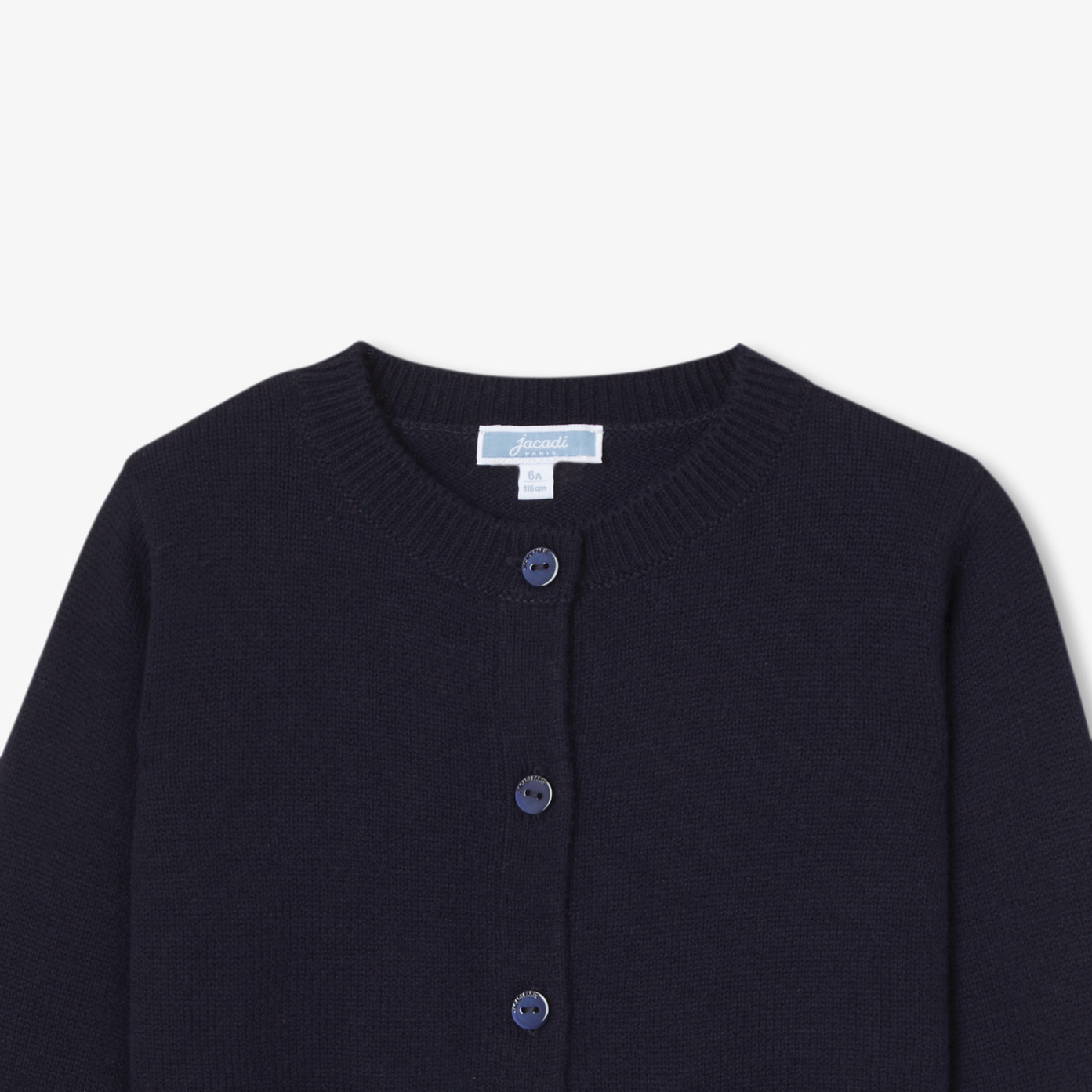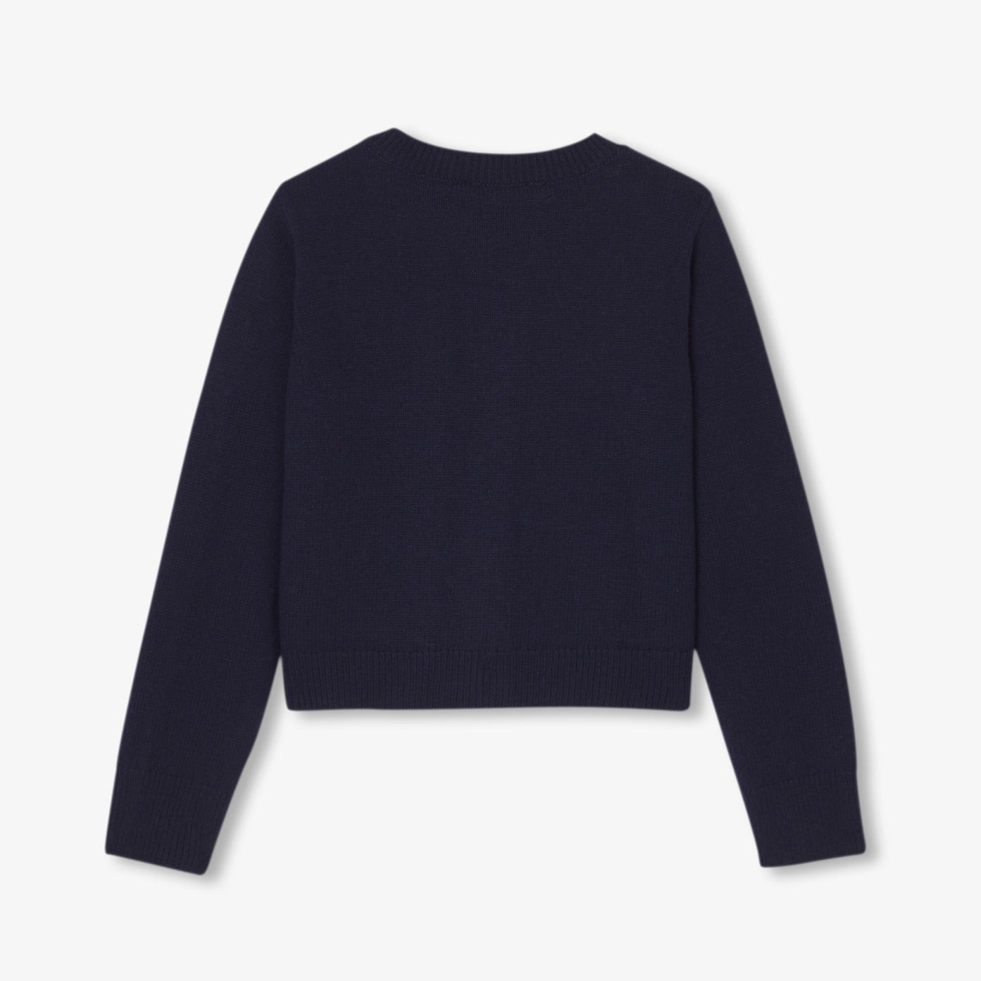 To complete an everyday outfit and warm up a look, this girl cardigan is available in sustainable wool and cashmere. Buttoned and accessorised with patch pockets, your daughter will wear it with wide-leg jeans and a ruffled blouse for a chic, Parisian silhouette.- Sustainable wool and cashmere cardigan- Patch pockets- Mother-of-pearl button closure