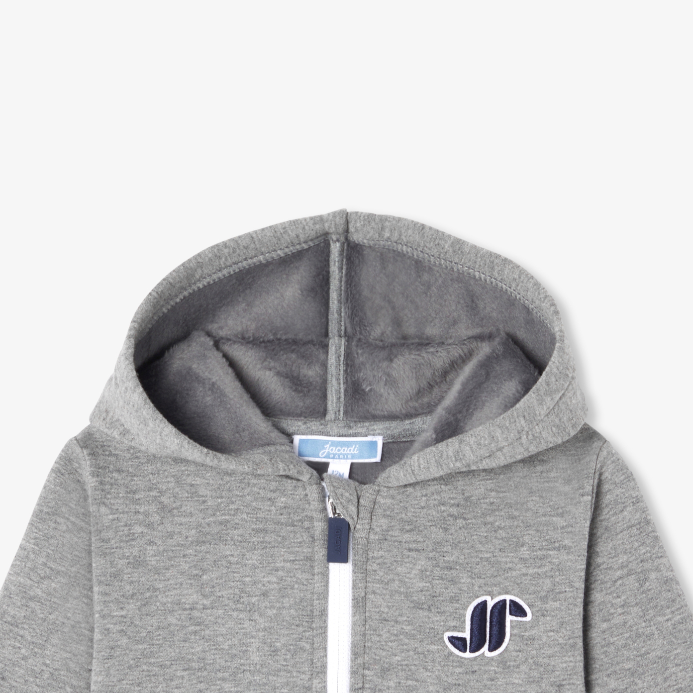 This baby boy zip-up sweatshirt revisits the sportswear spirit with modernity. Made from soft, comfortable fleece, it features neat details such as contrasting zips, framis on the pockets and a signature Jacadi badge on the chest. An urban-minded essential to slip into your seasonal wardrobe for everyday looks.- Baby fleece hoodie- Contrasted zip opening- Pockets with framis detail- JP badge on chest