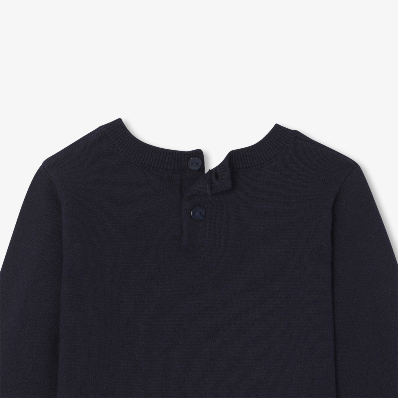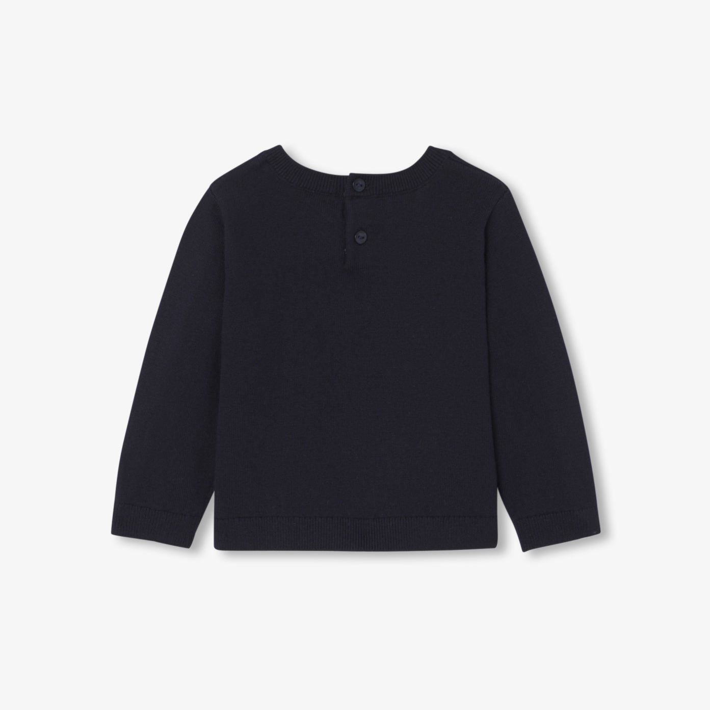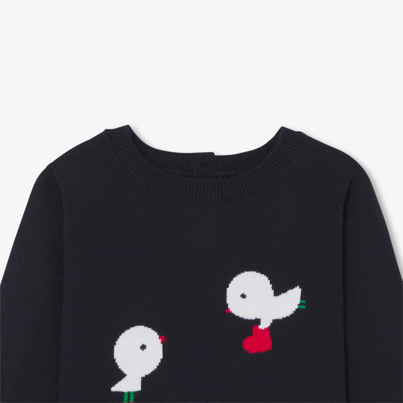 A must-have for an every day wardrobe, this baby girl sweater features a whimsical intarsia bird and flower motif. In organic cotton and sustainable wool, pair this button-down model with a collar bodysuit and velvet milleraies shorts for a chic, Parisian casual silhouette.- Organic cotton and sustainable wool baby girl sweater- Round neck- Intrasia birds and flower- Tone-on-tone buttoning at back
