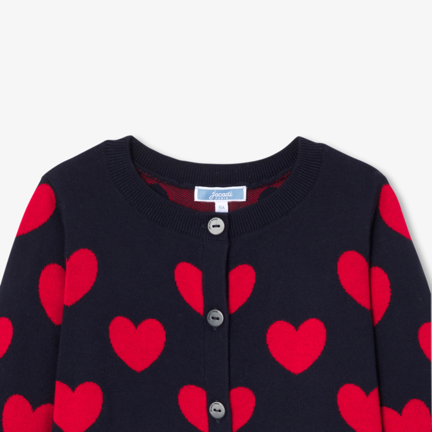 Jacadi revisits the classic cardigan to create an ultra-contemporary geometric design. Available in organic cotton and featuring a double-sided heart jacquard, worn with wide-leg jeans or a pleated skirt, it will add a modern, colourful touch to any everyday silhouette.- Girl cardigan in organic cotton- Double-sided heart jacquard- Tone-on-tone mother-of-pearl button opening
