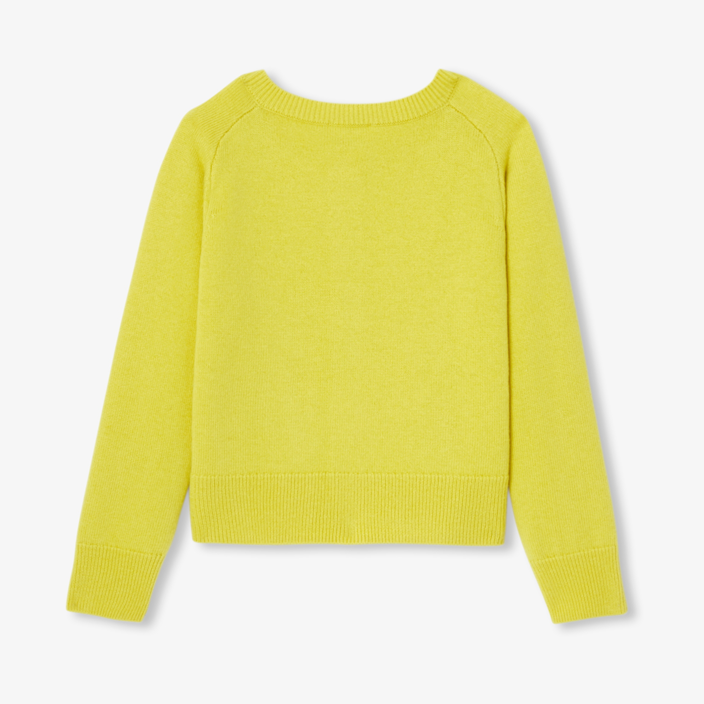 An autumn wardrobe classic in a new colourway, this girl cardigan features an openwork armhole and ribbed trim for a chic, refined silhouette. In wool and cashmere, this versatile model can easily be worn over a dress or t-shirt with jeans.- Girl cardigan in sustainable wool and cashmere- Openwork armhole - Ribbed trim- Tone-on-tone pearlised buttoning