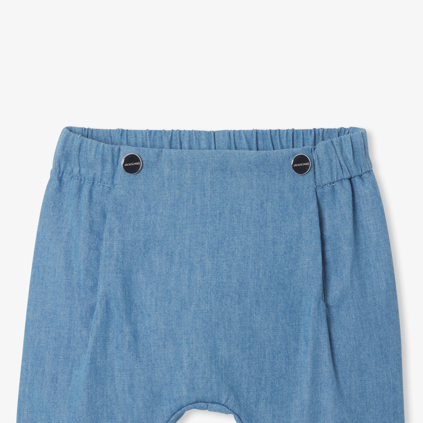 With a classic cut revisited by a tab waistband, these baby jeans specially designed for toddlers stand out thanks to their lightweight fabric and mesh lining for comfort and ease. Worn with a t-shirt and fleece cardigan for a contemporary look, Jacadi has created the perfect first pair of jeans.-Lightweight, supple denim-Mesh lining-Elasticated waistband-Decorative tab press studs-Great idea for a baby gift, either for yourself or as a present.