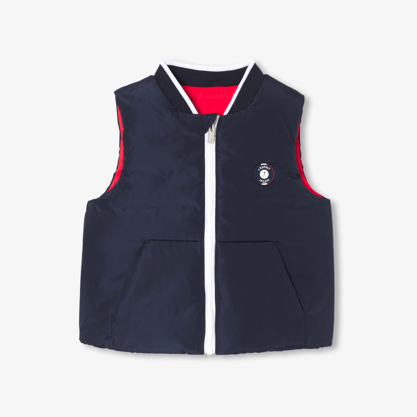 Jacadi puts all its expertise at the service of children's fashion, creating ingenious pieces like this sleeveless padded jacket. Made from water-repellent nylon, this chic and practical sporty piece is reversible. Worn smooth-sided or red padded over a sweater or sweatshirt, it will be part of every early-season outing.- Reversible sleeveless padded jacket- Water-repellent nylon- One smooth side and one padded side- Badge on chest- Ribbed collar- Zip closure