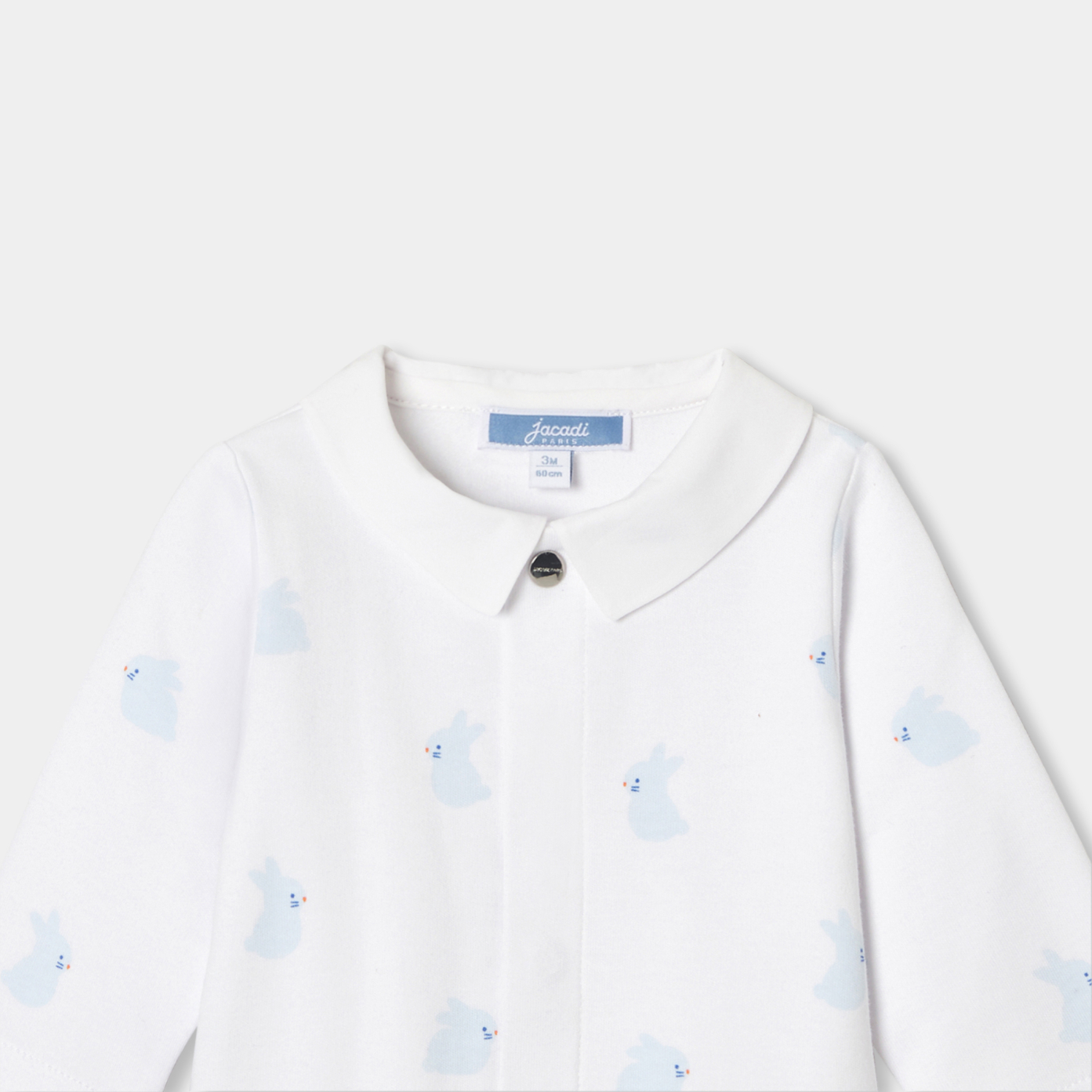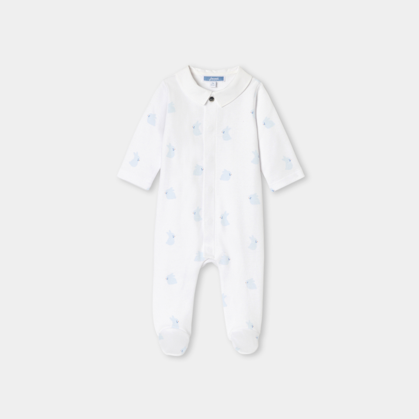Elegant day and night in baby boy's organic cotton interlock pyjamas. All-over print and featuring an elegant poplin collar, they open at the front with invisible snaps for easy, secure dressing. An everyday essential to slip into your hospital bag, it is perfect for putting together your newborn's first trousseau.-Organic cotton boy sleepwear-Poplin collar-All-over print-Invisible front press studs-Great idea for a baby gift, either for yourself or as a present.