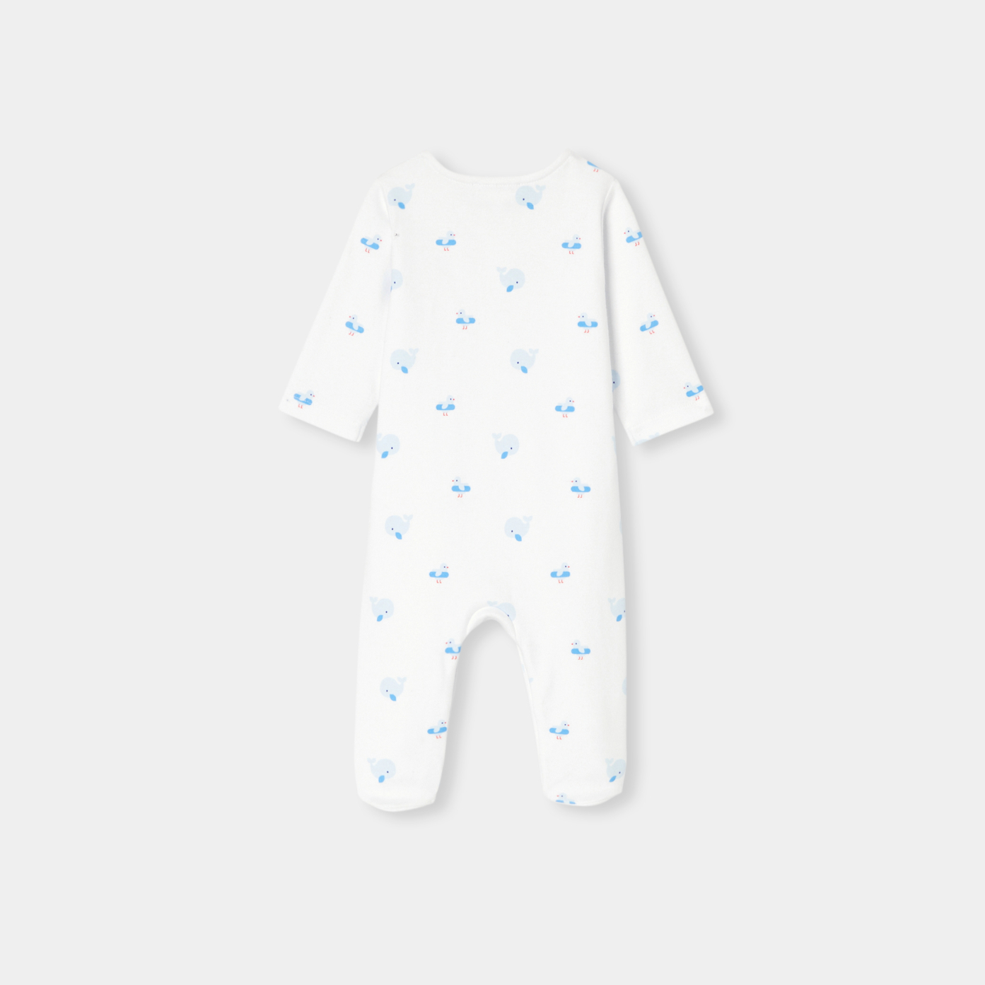With a seagull motif printed on soft, lightweight organic cotton interlock and a front opening for easy dressing, these baby boy pyjamas have it all. Designed for beautiful summer nights, you won't be able to resist its chic, minimalist seaside look.-Baby boy pyjamas in organic cotton-Gull pattern-Snap front opening