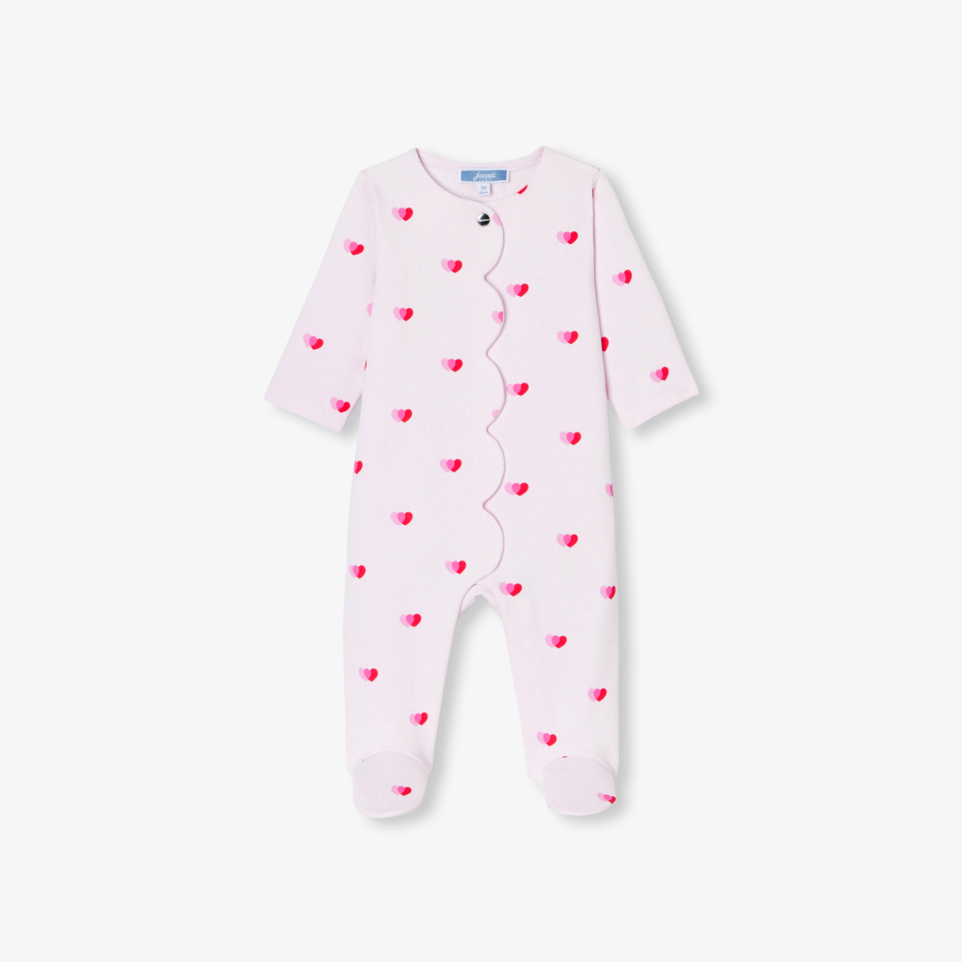 In soft, comforting fleece, fall for these baby girl pyjamas. A wardrobe classic modernised with a heart motif and pretty scallops, they open at the front with invisible snaps for easy, secure dressing. A promise of soothing naps and nights, give it as a birth gift.- Baby girl organic cotton pyjamas- Brushed fleece interior- Heart motif- Scalloped front opening with invisible press studs- Great birth gift idea.