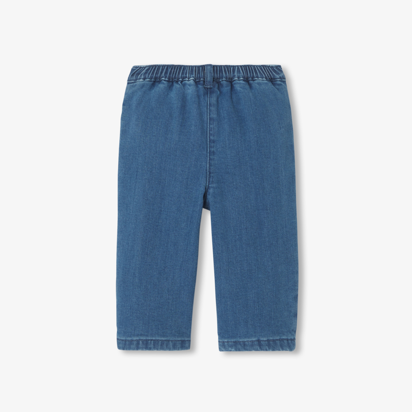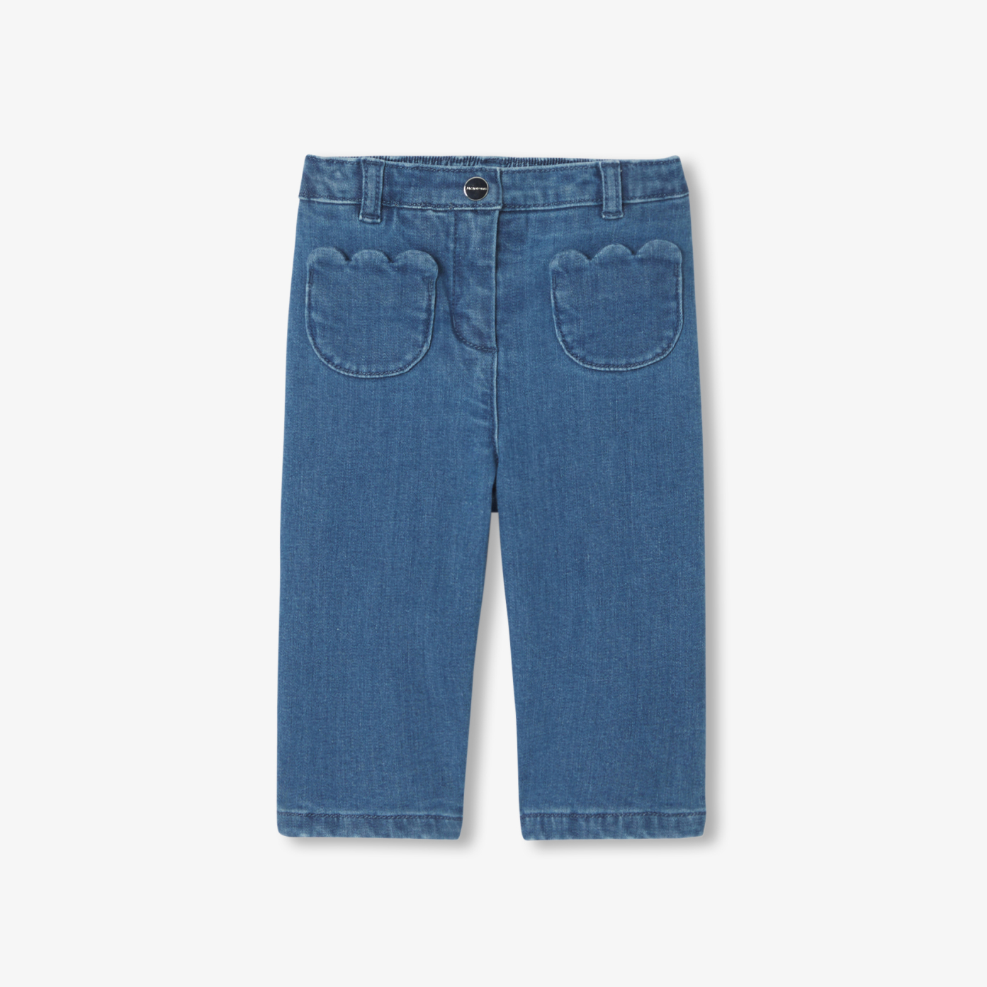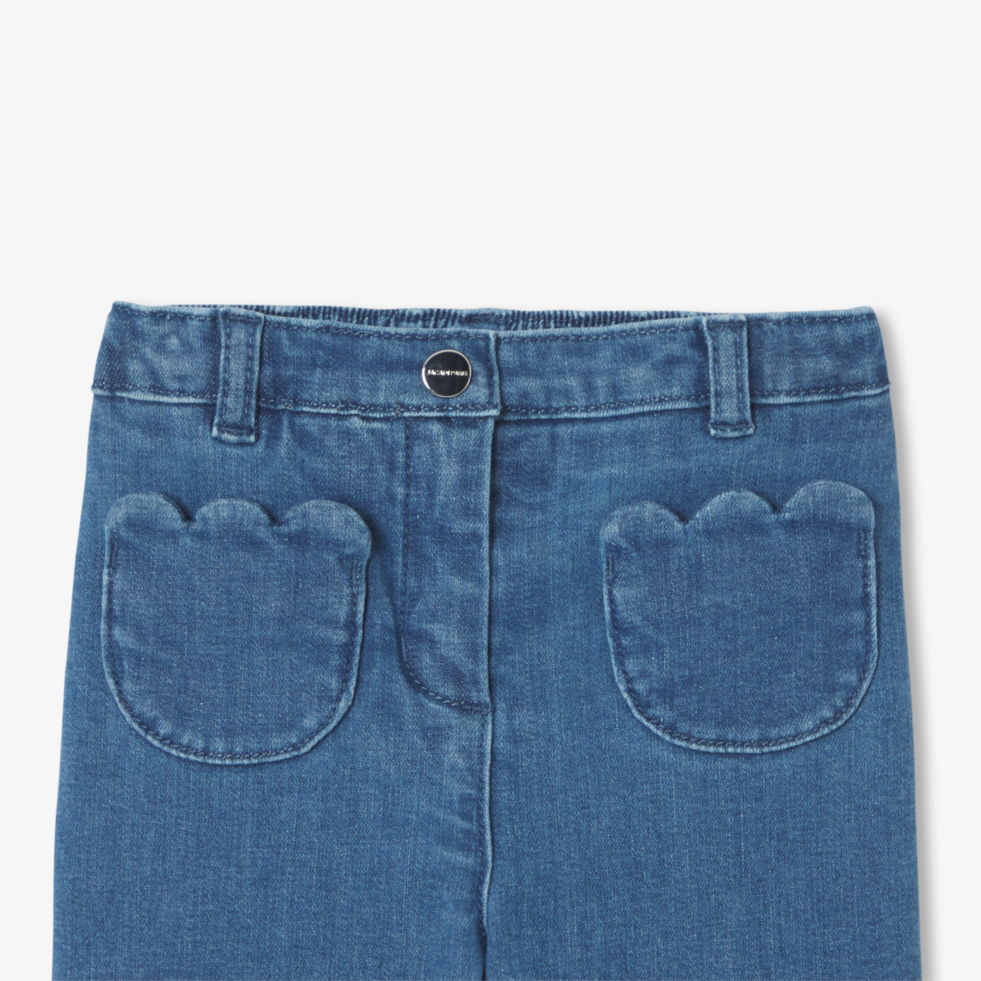 For the daycare and the first spring outings, choose the comfort of these baby girl jeans. A wardrobe classic lined in cotton voile for baby's comfort, with tulip-shaped pockets and an elasticated waistband, these jeans are perfect for matching with a blouse and cardigan for everyday wear.-Comfort baby girl jeans-Lined in cotton voile-Tulip-shaped patch pockets-Elasticated waistband adjustable from inside-Zip and button closure