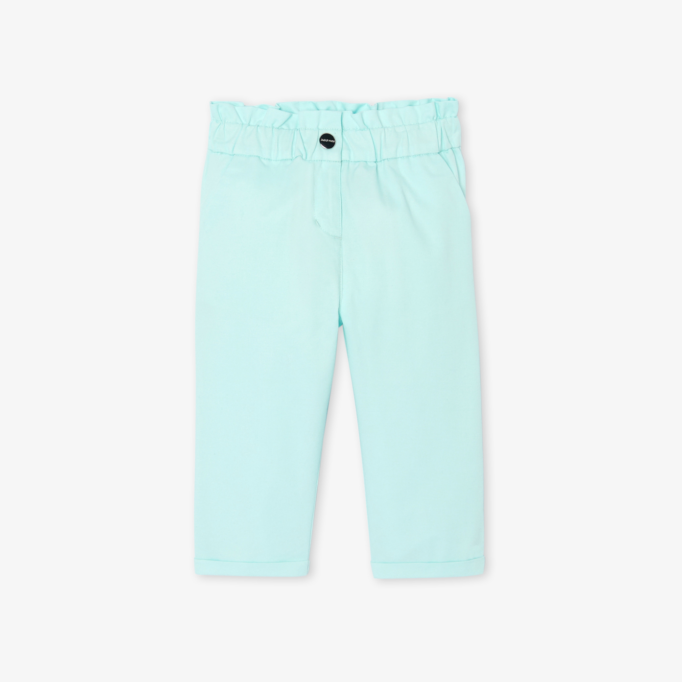 Designers revisit the classic twill trousers to make it a fashion statement. Gathered paper bag waist, slightly wider at the thighs and tightened at the bottom of the leg, its carrot cut will pair perfectly with a t-shirt and a wadded Liberty jacket for a chic and romantic silhouette.-Baby girl carrot trousers-Organic cotton twill-Gathered and elasticated high waist-Italian pockets-Zip and press stud closure