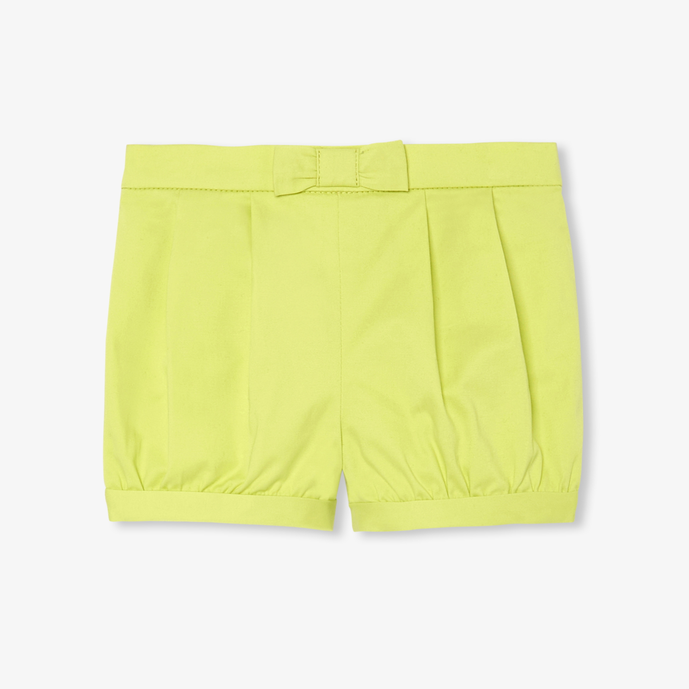 A sunny colour, a retro ball cut, the baby girl shorts will be part of every look this season. Made from cotton twill, with a pretty bow at the waist, pleats and hems, these summery shorts can be worn with a Liberty blouse or a t-shirt for a chic casual silhouette.-Baby girl ball shorts in organic cotton twill-Waist bow-Cuffs at bottom of legs-Adjustable elasticated waistband