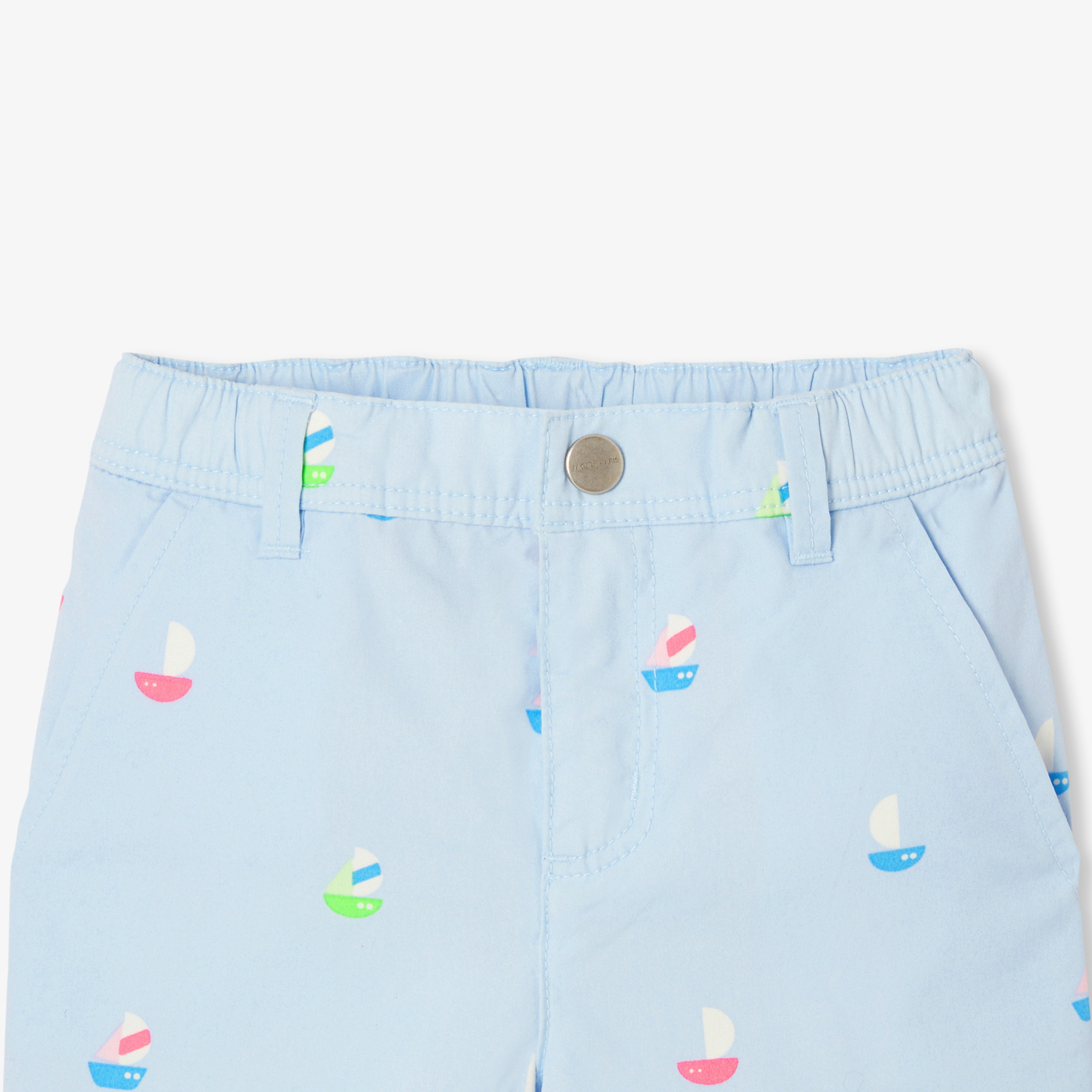 Find all the Jacadi chic in these baby boy shorts. A wardrobe classic modernised with an embroidered boat motif on organic cotton twill, straight cut and elasticated waistband, pair it with a t-shirt or polo for a chic seaside look to wear in town and on vacation.-Baby boy shorts in organic cotton twill-Embroidered boats-Italian pockets on front-Plated pocket on back-Adjustable elasticated waistband