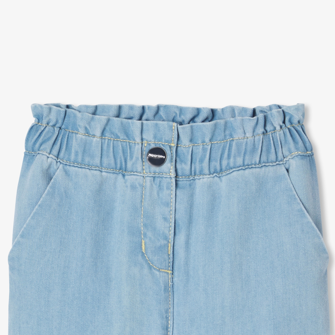 A wardrobe classic in faded canvas, these baby girl jeans have a paper bag waist and a carrot cut for back-to-school. Practical and easy to slip on thanks to their elasticated waistband, t-shirt, blouse or sweatshirt, they appeal for their versatility.- Baby girl jeans in soft canvas- Carrot cut- Elasticated paper bag waist- Italian pockets- Snap closure