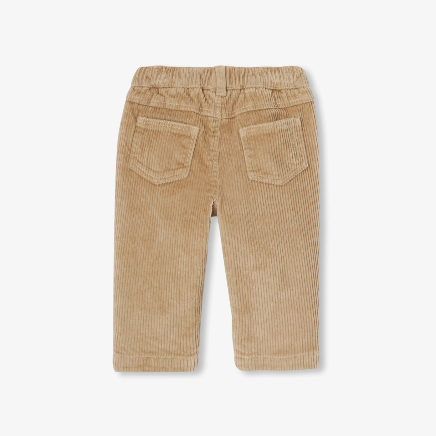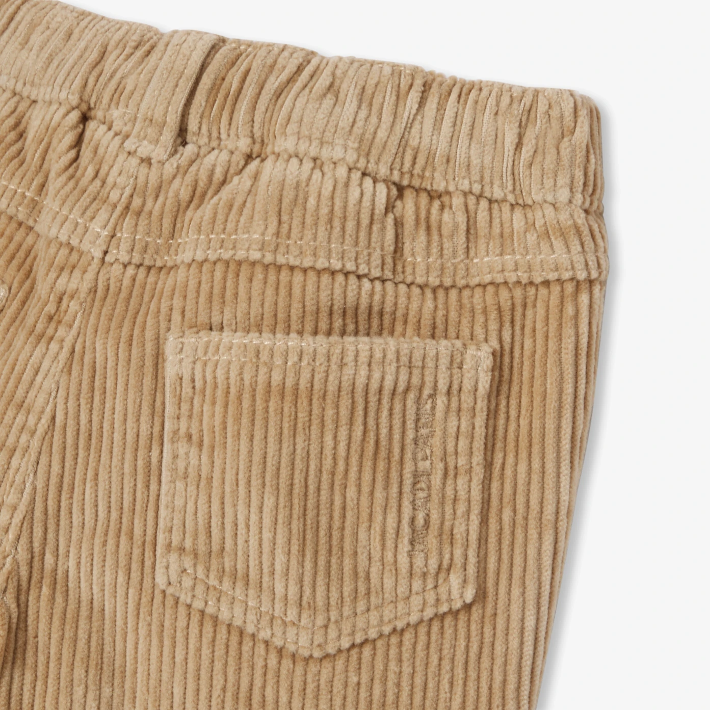 As chic as they are authentic, corduroy trousers are a must-have for the fall-winter wardrobe. Flexible and covering thanks to its jersey lining, this easy-to-wear model for everyday wear or dressier occasions will follow baby all season long.- Baby trousers in chunky corduroy and organic cotton- Jersey lining- Faux fly- Tone-on-tone Jacadi embroidery on back pocket- Adjustable elastic waistband