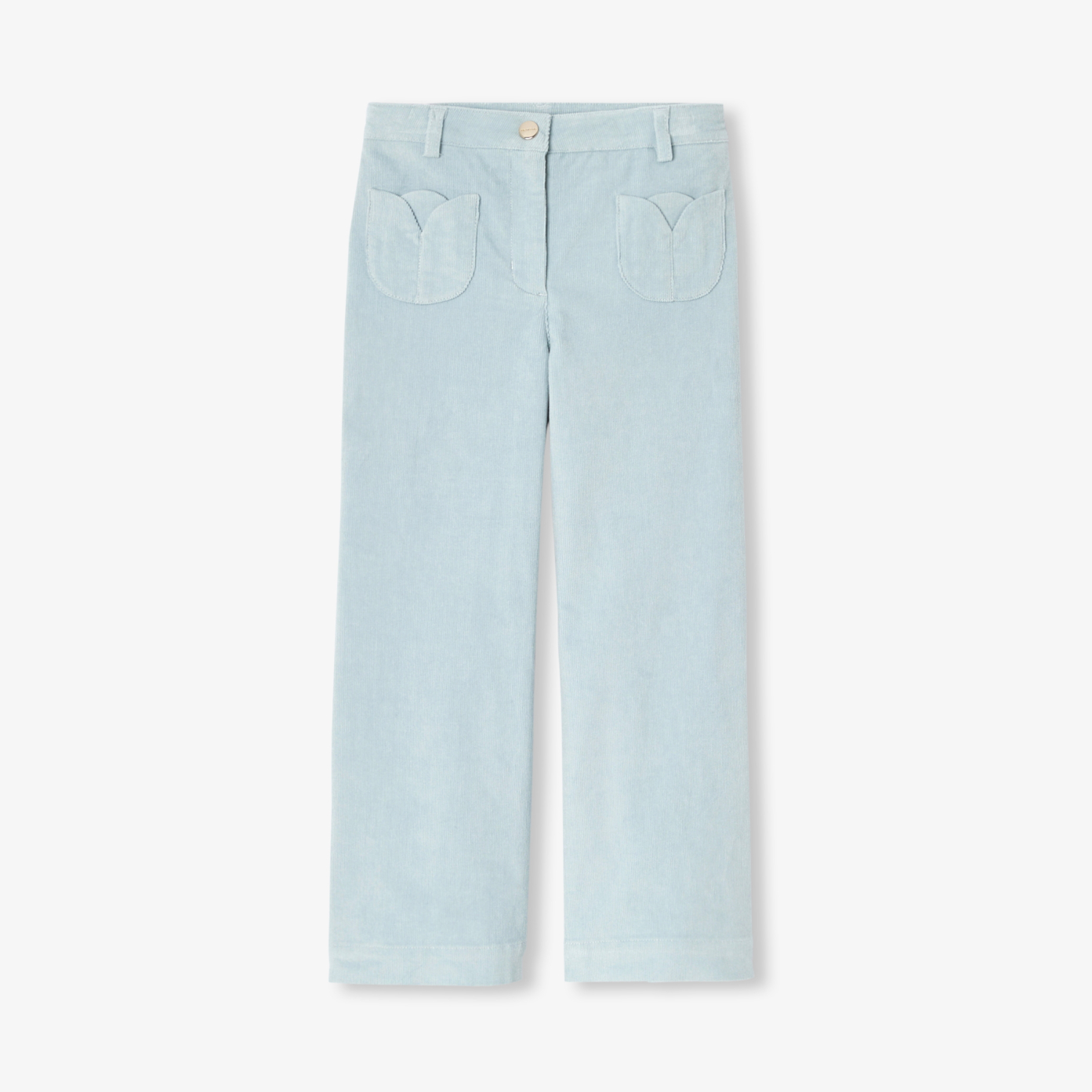 A retro-chic alternative to jeans, our designers have reinterpreted the everyday trousers to create an elegant, comfortable style. Made in supple milleraie velvet with wide legs, flower-shaped pockets sublimate this model, which can be paired with a blouse and cardigan for a chic, urban silhouette.- Wide-leg trousers in velvet milleraies- Flower-shaped patch pockets- Back patch pockets- Zipped and buttoned opening- Waist adjustable from inside