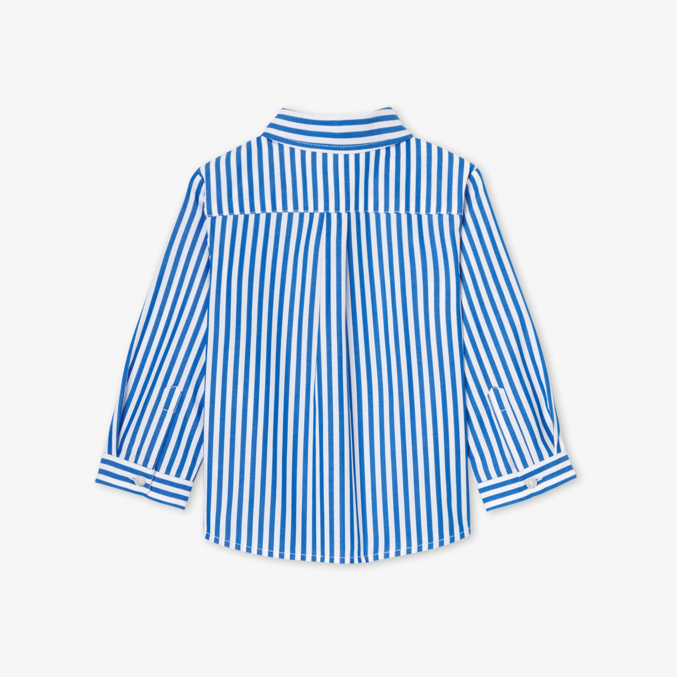 Timeless elegance of a vertical stripe, softness of organic cotton poplin, this classic baby boy shirt is accessorised with an Eiffel Tower badge for an up-to-date look. Worn open over a printed t-shirt or closed with rolled-up twill trousers, it is charming with its versatility.- Organic cotton baby boy shirt- Dyed yarn stripes- Badge on chest- Buttoned opening