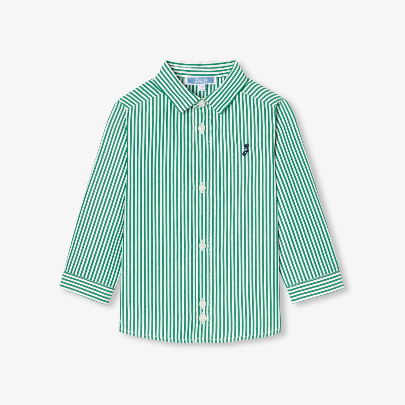 A classic of the preppy wardrobe, this baby boy striped shirt promises a chic, contemporary silhouette for back-to-school. Made from soft, lightweight cotton poplin, it goes equally well with velvet trousers or cuffed jeans to create a dressy or more urban outfit.- Organic cotton poplin shirt- Vertical stripes- Buttoned opening- J embroidered on chest