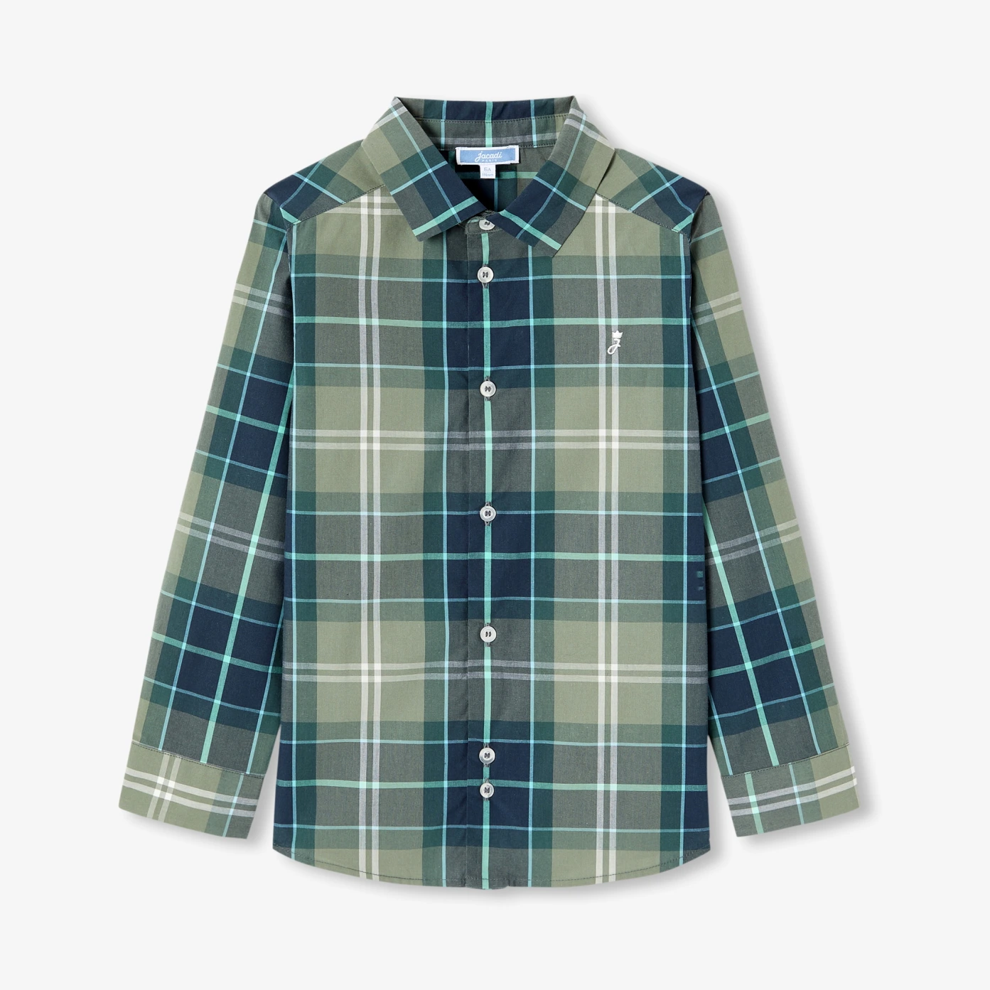 Chic and cozy, the winter wardrobe lives up on all its promises with this boys shirt. In poplin printed with an elegant tartan pattern, it stands out thanks to its peach-skin effect that brings warmth and softness. A model to wear alone or under a sweater with velvet pants.- Boys shirt in organic cotton- Peachskin-effect poplin- Tartan pattern- Embroidery on chest- Buttoned opening