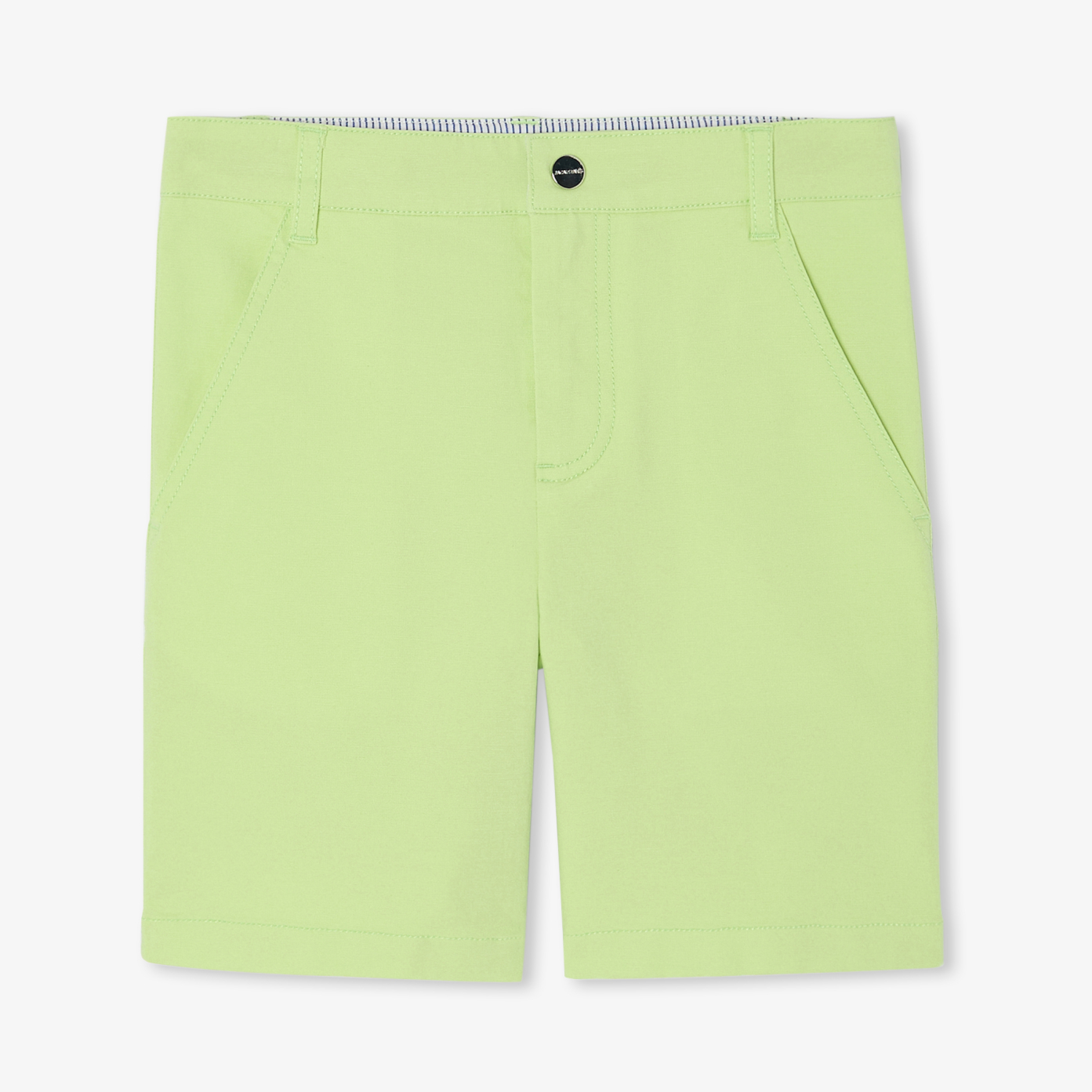 Available in canvas fabric known for its sturdiness, choose the casual elegance of these boy shorts for summer. An everyday essential in bold colours, they will seduce you with their versatility when paired with a t-shirt, polo shirt or shirt for casual or preppy silhouettes.- Boy shorts in organic cotton canvas- Zipped and buttoned opening- Italian pockets on front- Striped Oxford on inside waistband- Waist adjustable from inside.