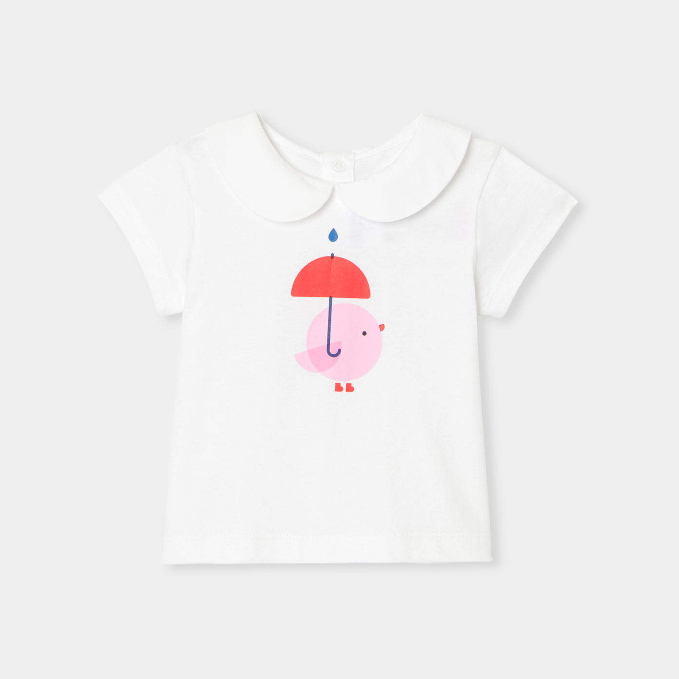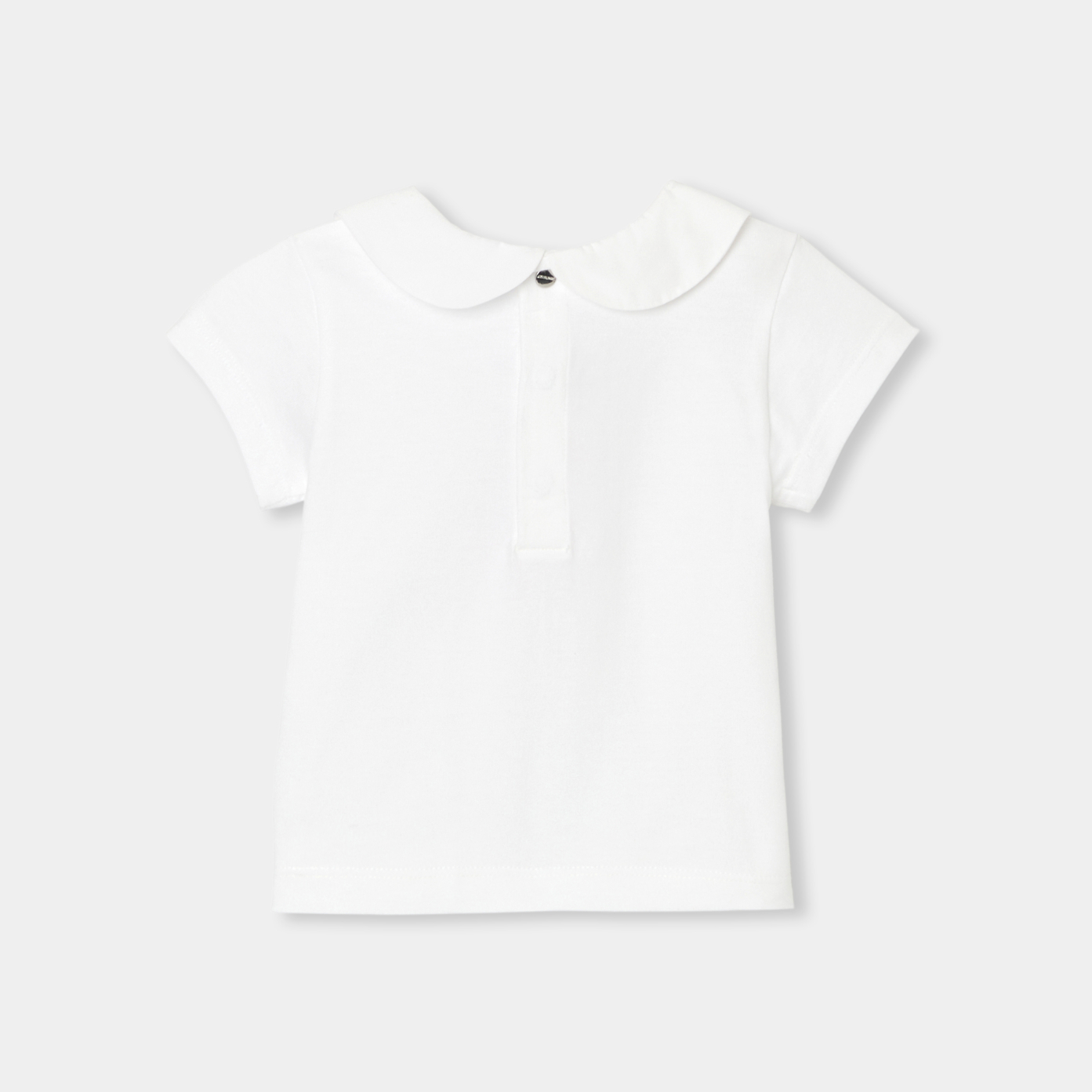 Everyday casual chic and easygoing with this baby girl t-shirt. Made from organic cotton, this easy-to-slip-on model features a Peter Pan collar and a playful print that little girls will love.-Organic cotton baby girl t-shirt-Playful print-Peter Pan collar with contrasting bias-Snap-back opening