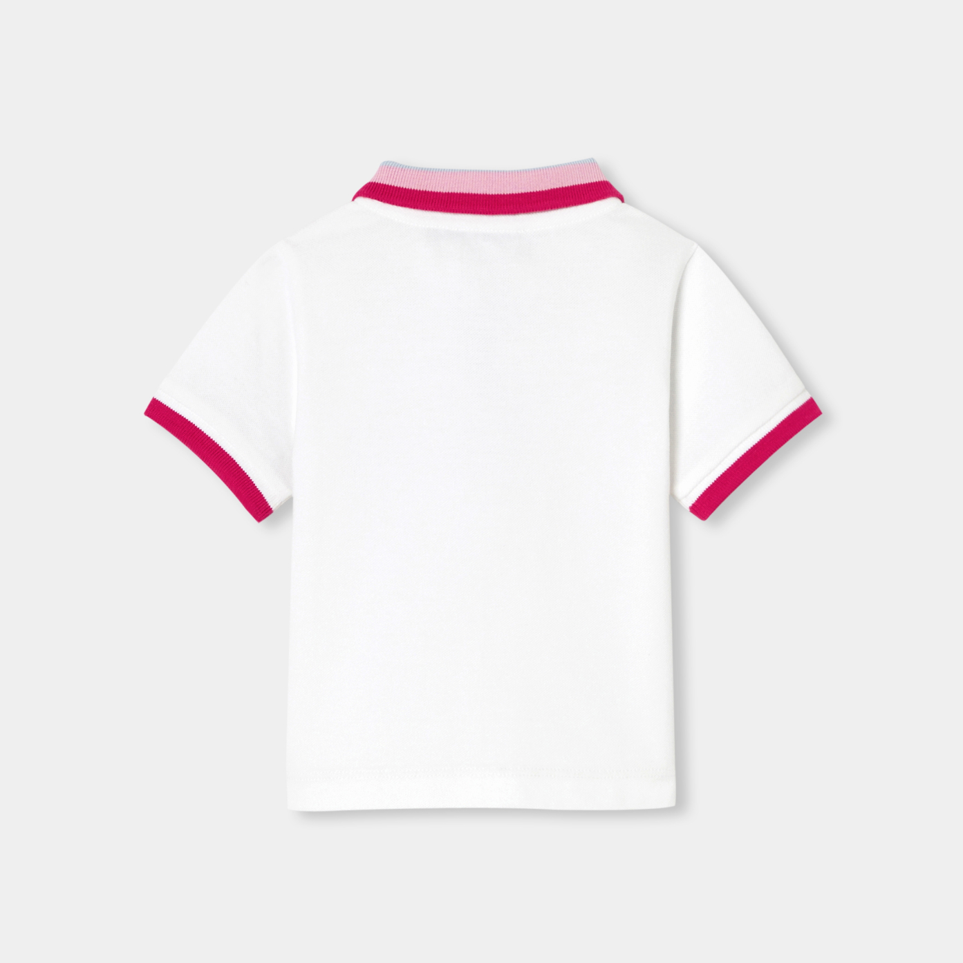 As comfortable as ever with its soft, stretchy piqué knit, this baby boy polo opts for a preppy chic look this summer. Modernised by a contrasting collar and cuffs, a university crest patch completes this polo shirt, which can be worn with beige canvas shorts or trousers.-Baby boy polo shirt in organic cotton-Piqué knit-Collar and cuffs in ribbing-Button placket at neck-Patch on chest
