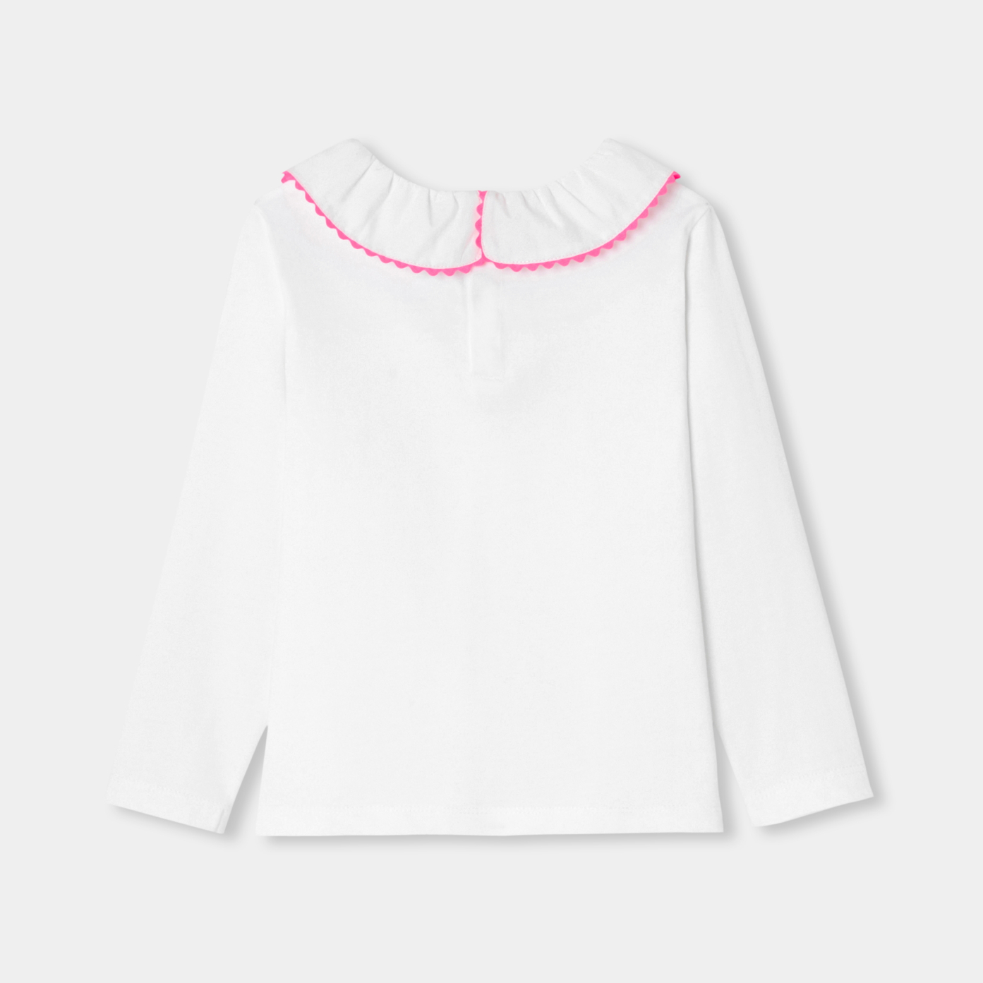 Adorned with a fancy poplin collar highlighted with a contrasting croquet ribbon, this girl long-sleeved t-shirt reveals all its chic. In organic cotton, pair this everyday staple with shorts and a sweater for a chic, Parisian silhouette.-Organic cotton long-sleeve t-shirt- Poplin collar- Contrast croquet detail- Back snap opening