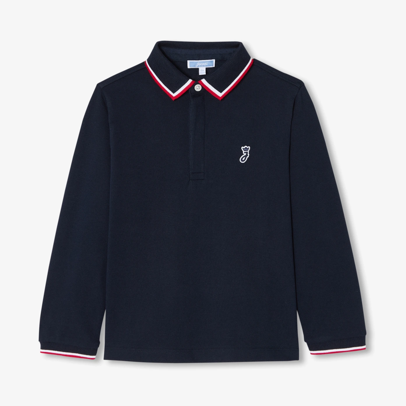 This fall, the traditional Boys polo opts for a chic, minimalist line. Available in sober colors, an elegant contrast piping highlights the collar. Worn with twill pants and desert boots for a chic urban silhouette, it can also be worn as part of a more formal outfit.- Polo shirt in plain cotton- Collar highlighted with contrasting piping- Button placket- J on chest